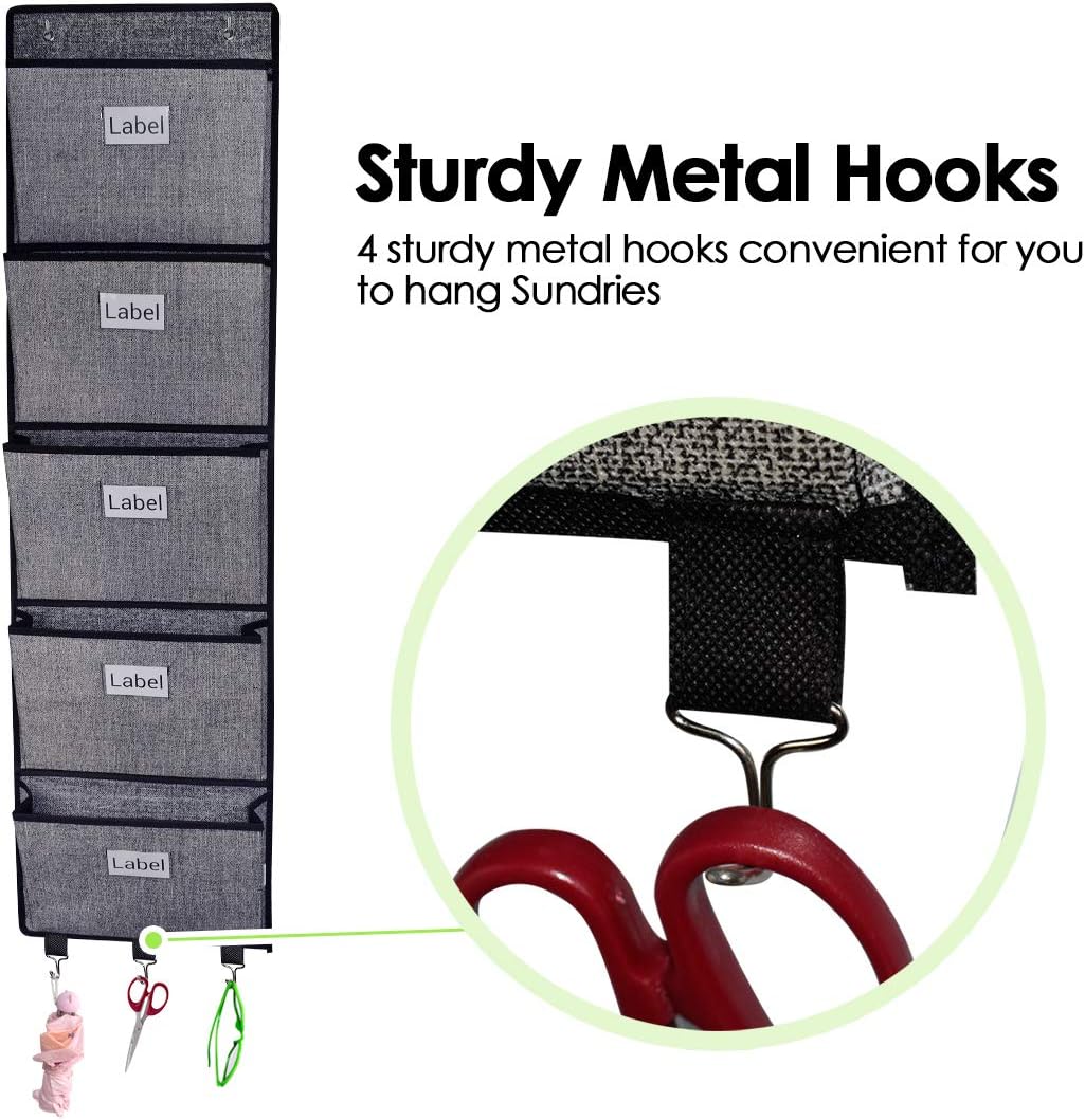 homyfort Over the Door File Organizer Hanging File Folders, Wall Organizers and Storage for Mail, Magazine, Notebooks, Planners, Office, Classroom, 5 Extra Large Pockets (Black with Pattern)