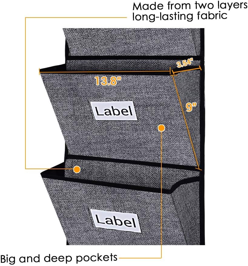 - [Heavy Duty and Well Made Quality] - This wall file organizer measures 13.8” wide and 50.39” long,made from two layers long-lasting fabric with thick card board inside, two non-corrosive grommets along the top for easy hanging