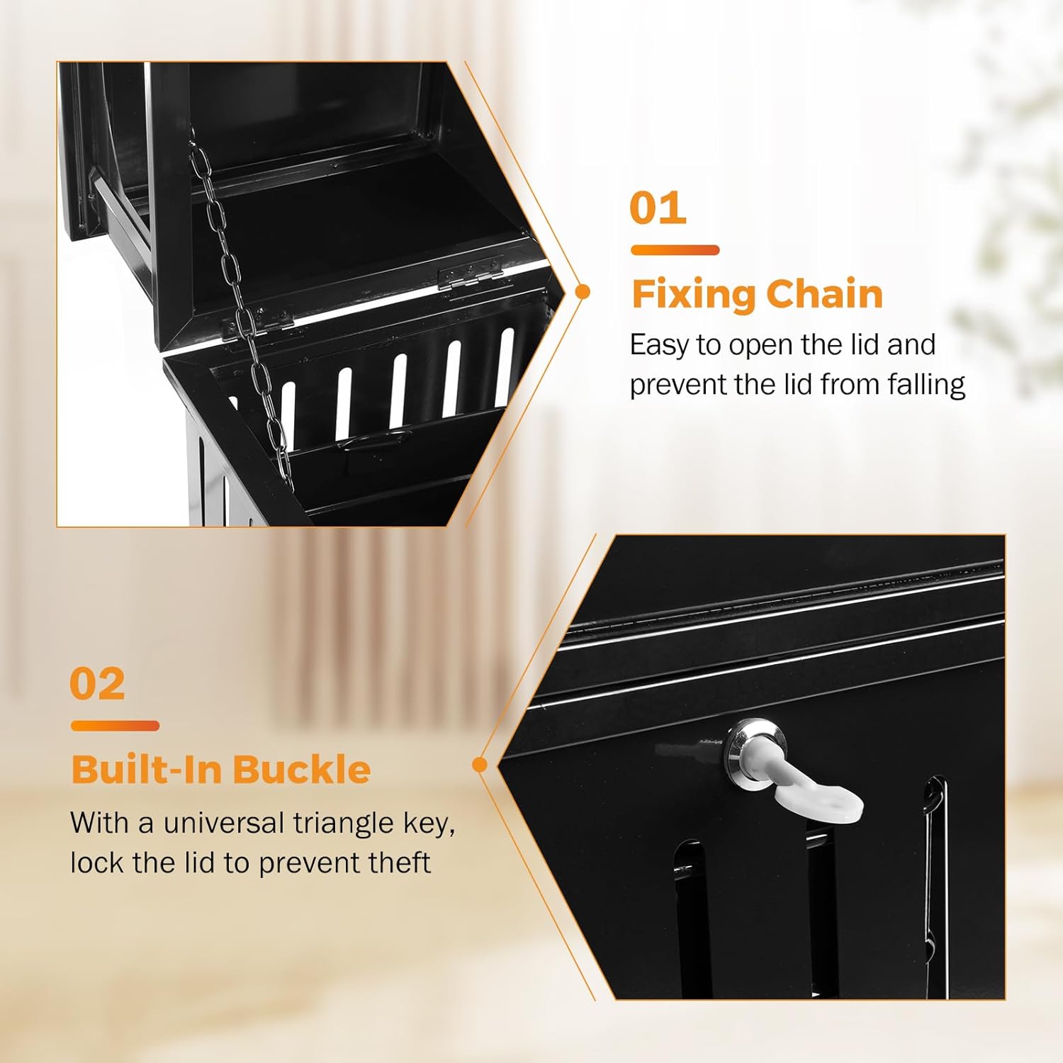 BEAMNOVA Trash Can Outdoor Top Tray Black Stainless Steel Commercial Garbage Enclosure with Locking Lid Heavy Duty Industrial Yard Garage Waste Container, 35.5 * 15.8 * 15.8 in