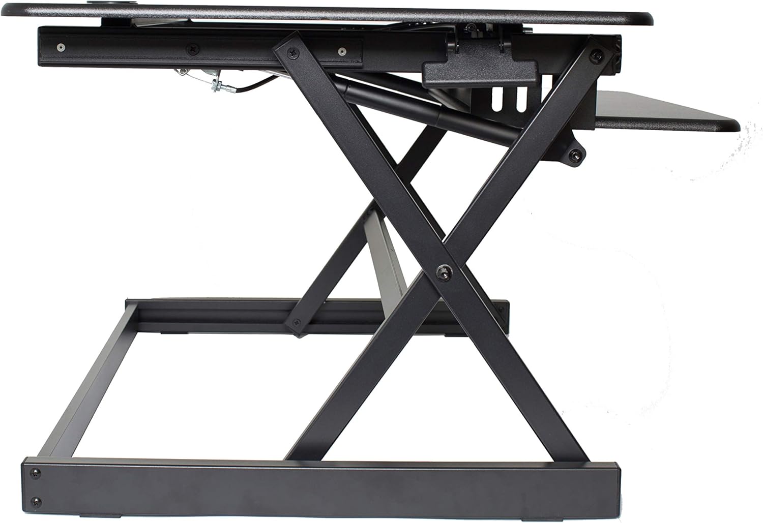 - QUICK, EASY AND STABLE HEIGHT ADJUSTMENT WITH EVR ENHANCED VERTICAL RANGE DESIGN: Metal frame with easy-grip side handle and gas piston assist; can raise and lower up to 40 pounds with continuous height adjustment from 5" up to 20" above desktop