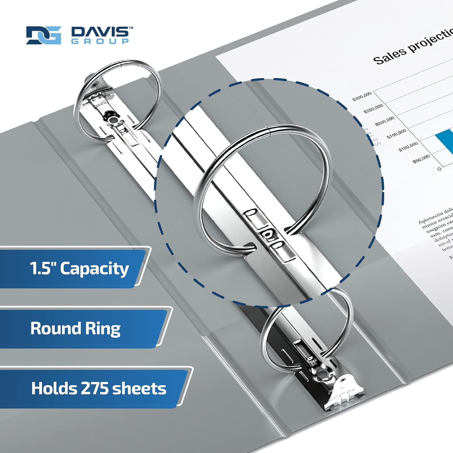 Easyview Premium 3-Ring Binders with Clear-View Covers and Round Rings, Binders for School or Office, 1.5 Inch, Pack of 6, Gray
