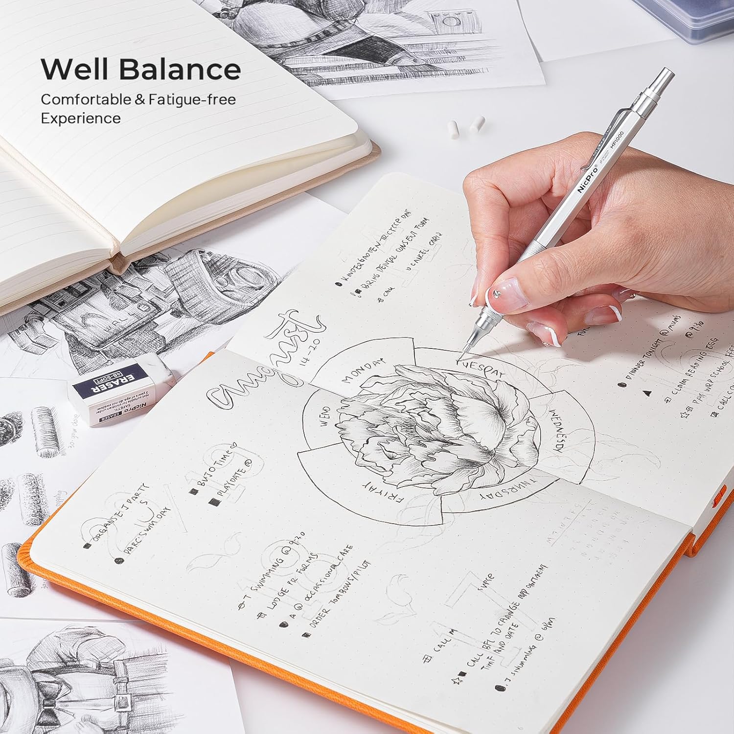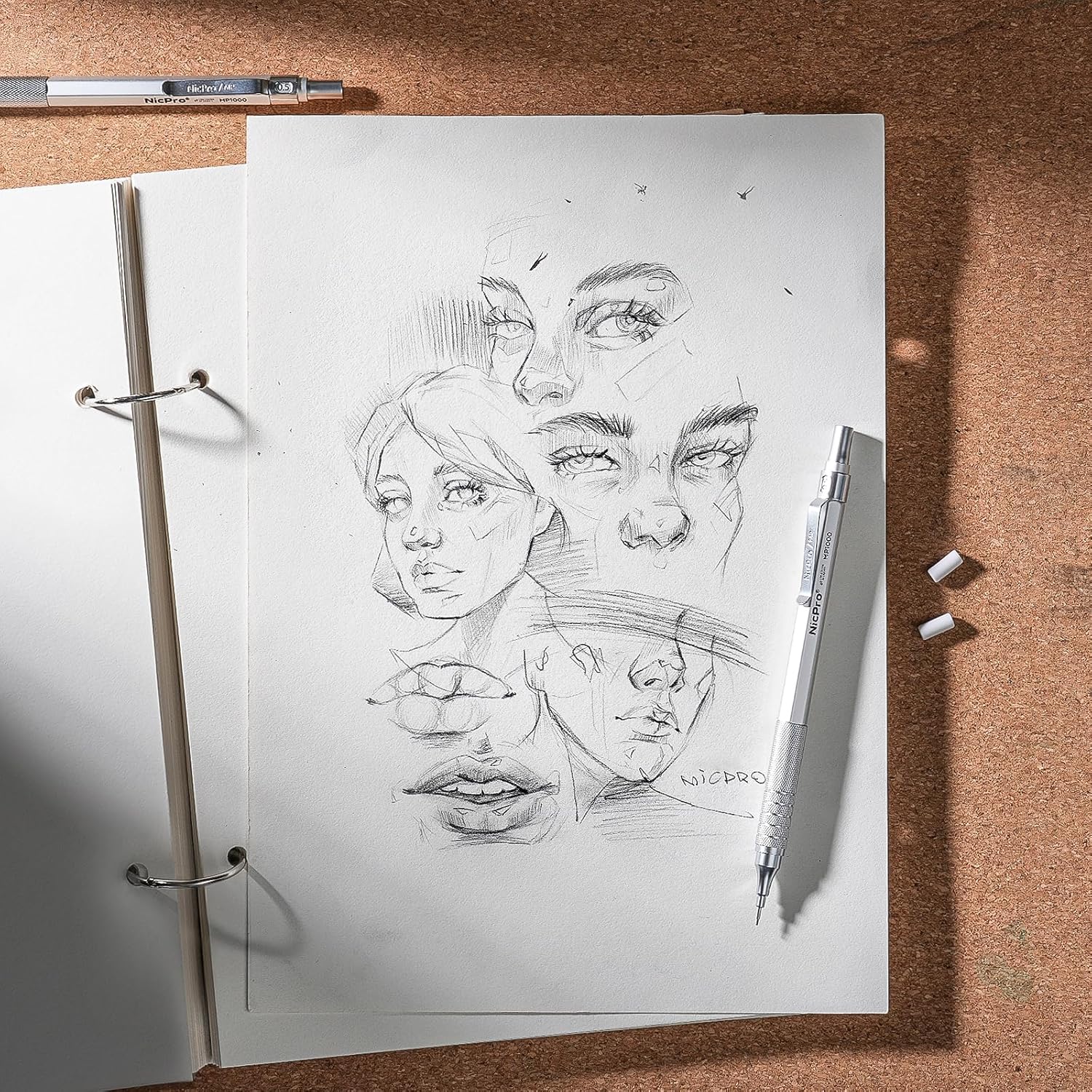 - 【Metal Threaded Anti-skidding Grip】 Nicpro MP1000 pencil adopt fancy hexagon barrel design with metal threaded grip, well balance pencil which bring you comfortable & fatigue-free writing & drafting experience