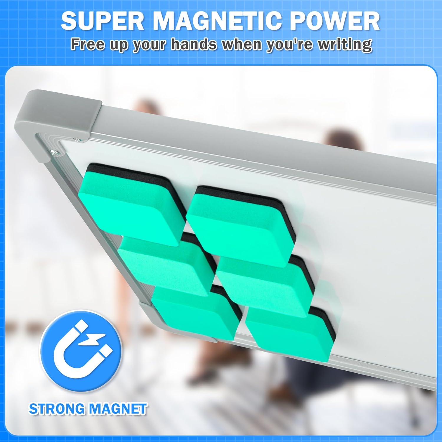 - MULTIFUNCTION: With strong absorb-ability, these erasers are good assistants for school, home, and office, because they are not just erasers, but also can be used as magnets on a whiteboard or any other magnetic surface. Great board cleanser for managers, teachers, students, and kids