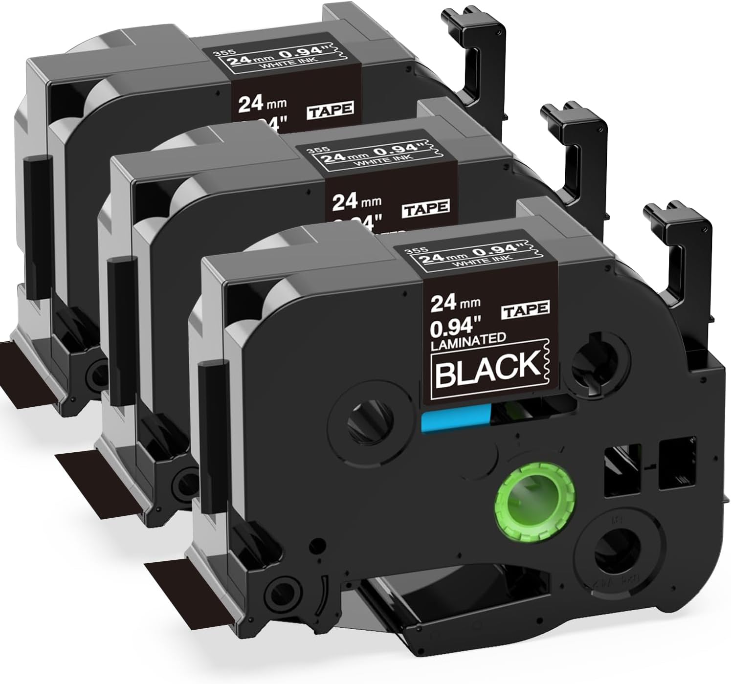 - 3-Pack compatible with brother p touch 1 inch black label tape TZe-355 TZe355 24mm tze black tape. Color: White on Black. Width: 24mm (1") Length: 8m (26.2ft)