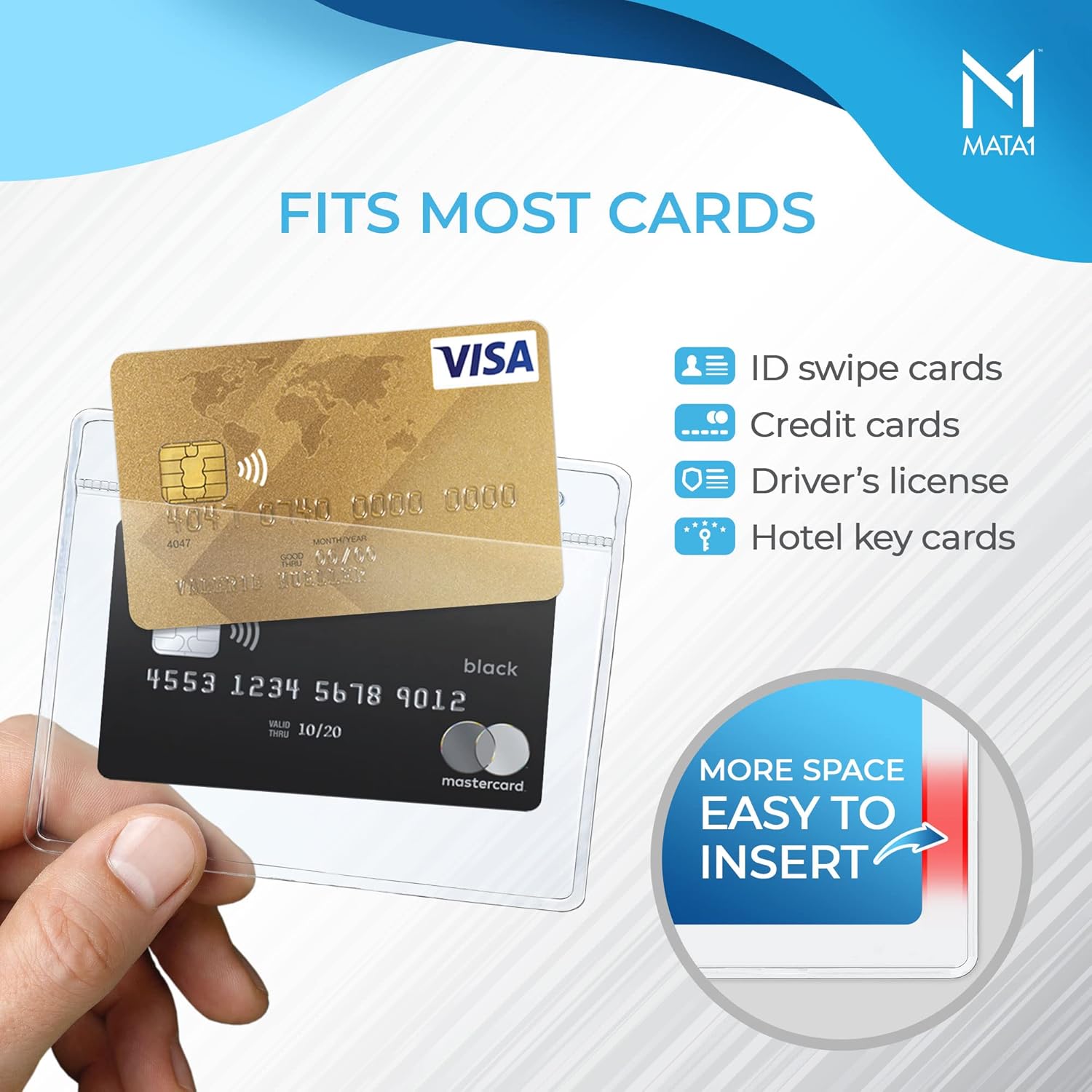 Mata1-USA Plastic Extra-Thick Horizontal Card Protector (Clear, 4x3 Inch, 250 Pack), Large Size No Zipper ID Name Badge Holder
