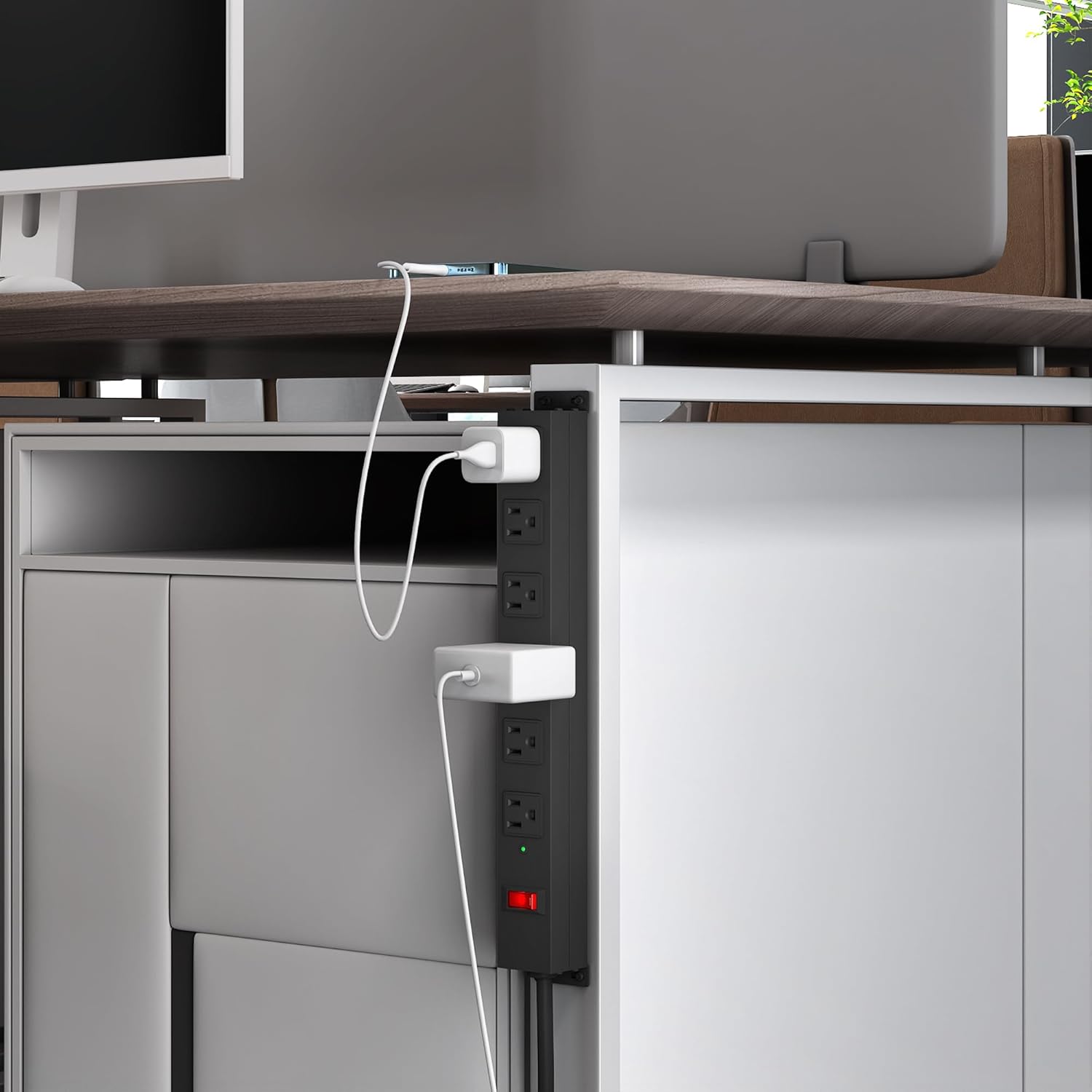 - WALL MOUNTED DESIGN:Durable metal power strip has mounting holes on the top and bottom, which can be installed under the table, table leg, wall and other places arbitrarily. It is convenient and can be used for a long time.