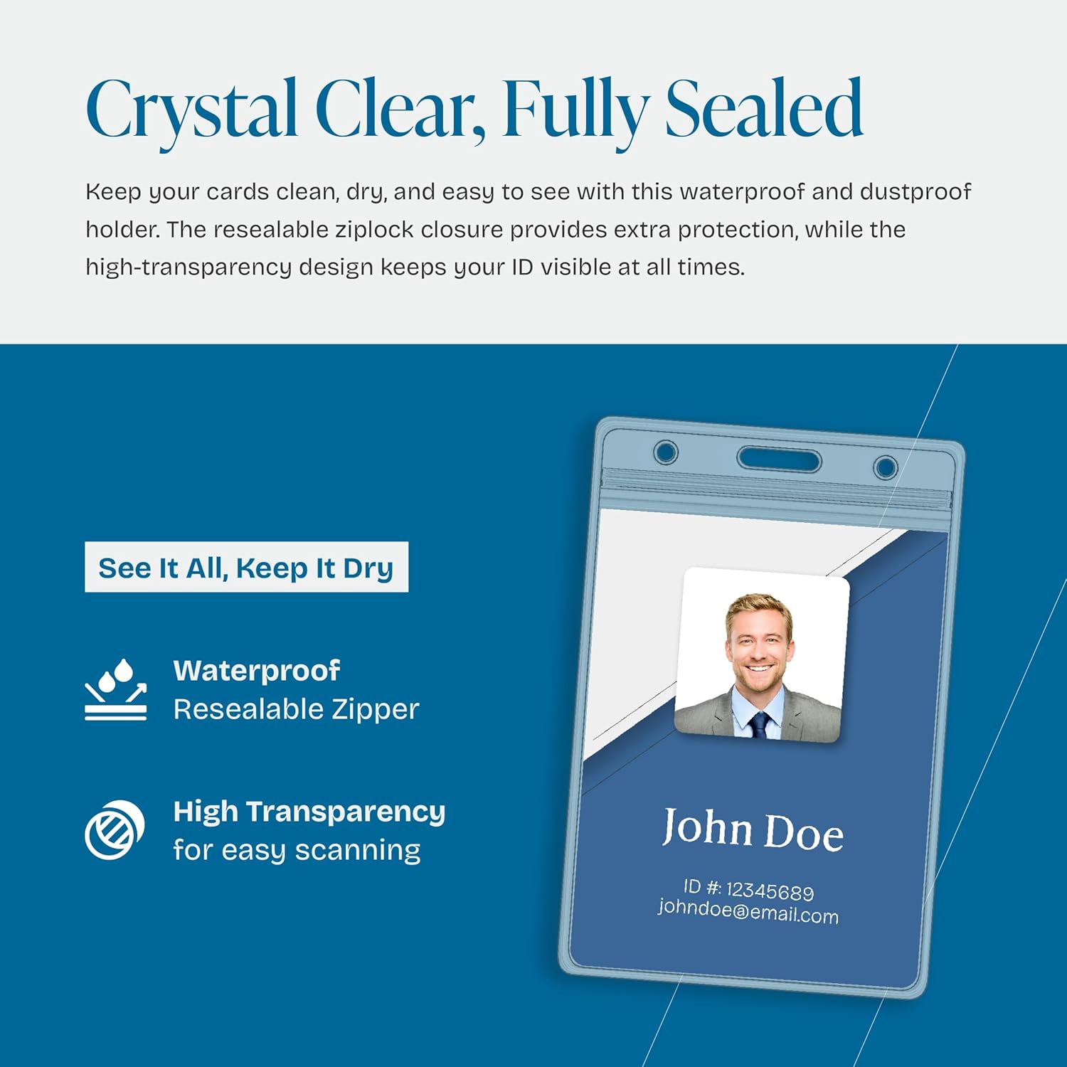 - ✔ Waterproof and Dustproof: Easily open and close with the excellent resealable ziplock closure. This waterproof and dustproof id card holder is great to keep your important paper badges or cards dry, clean and secure.