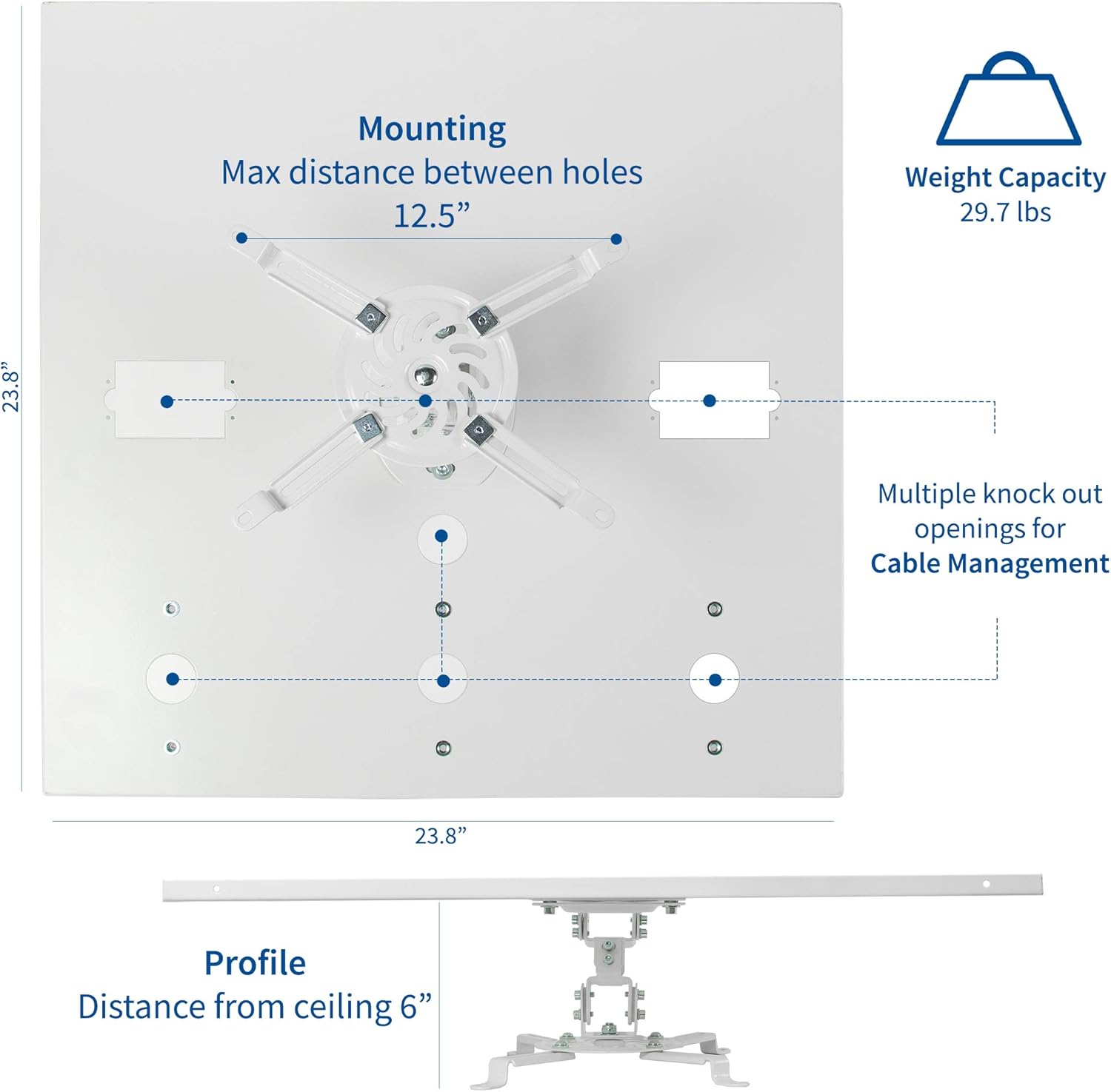 VIVO Universal Adjustable 2 x 2 feet Drop Ceiling Projector Mount, Suspended Drop-in Ceiling Tile Projection Mounting Kit, for Office Home or School, White, MOUNT-VP07DP