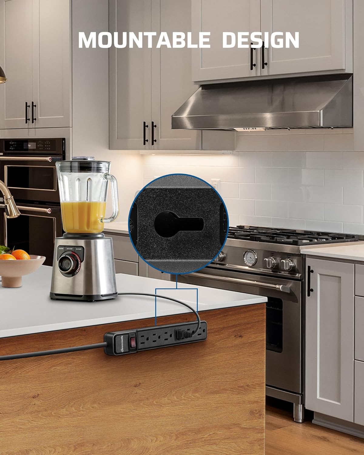 - 【 Wall Mountable 】Wall mount 6 outlet surge protector power strip has 2 keyhole mounting slots on the back, providing convenient wall mounting options; it can also be mounted to the workbench or under a desk