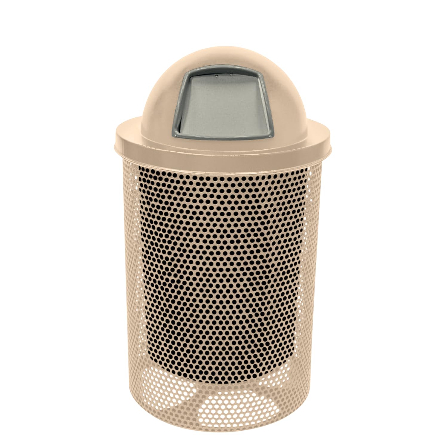 RDT-P-TAN Heavy Duty Round Trash Receptacle with Dome Top, Liner Included, 32 Gallon, Tan, Made in America