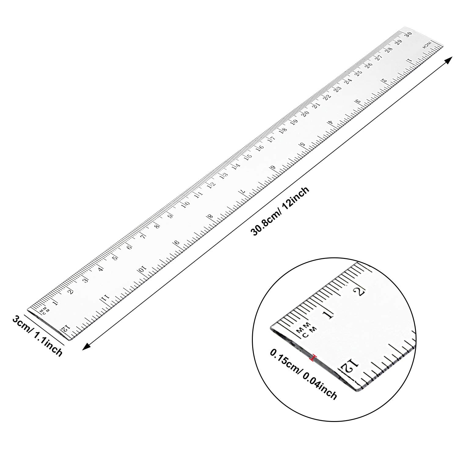 - Quantity: comes with 50 pieces transparent rulers, the size of this ruler is 12 x 1.1 inch (L x W), 0.04 inch in thickness, measures range is 12 inches/ 30 cm