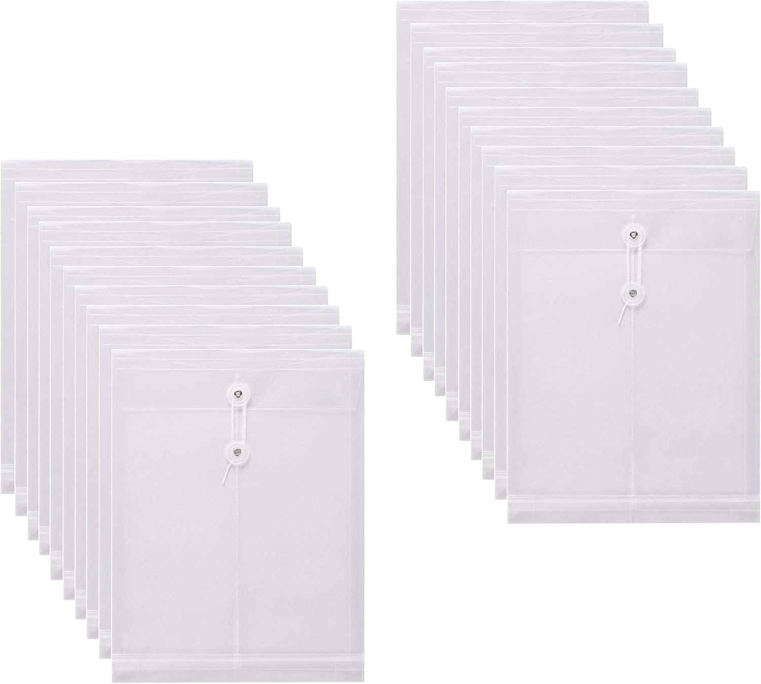 Letter Size Clear Poly Envelopes with String Closure Top Opening Folder Pack of 20 Bottom with Expanding Gusset