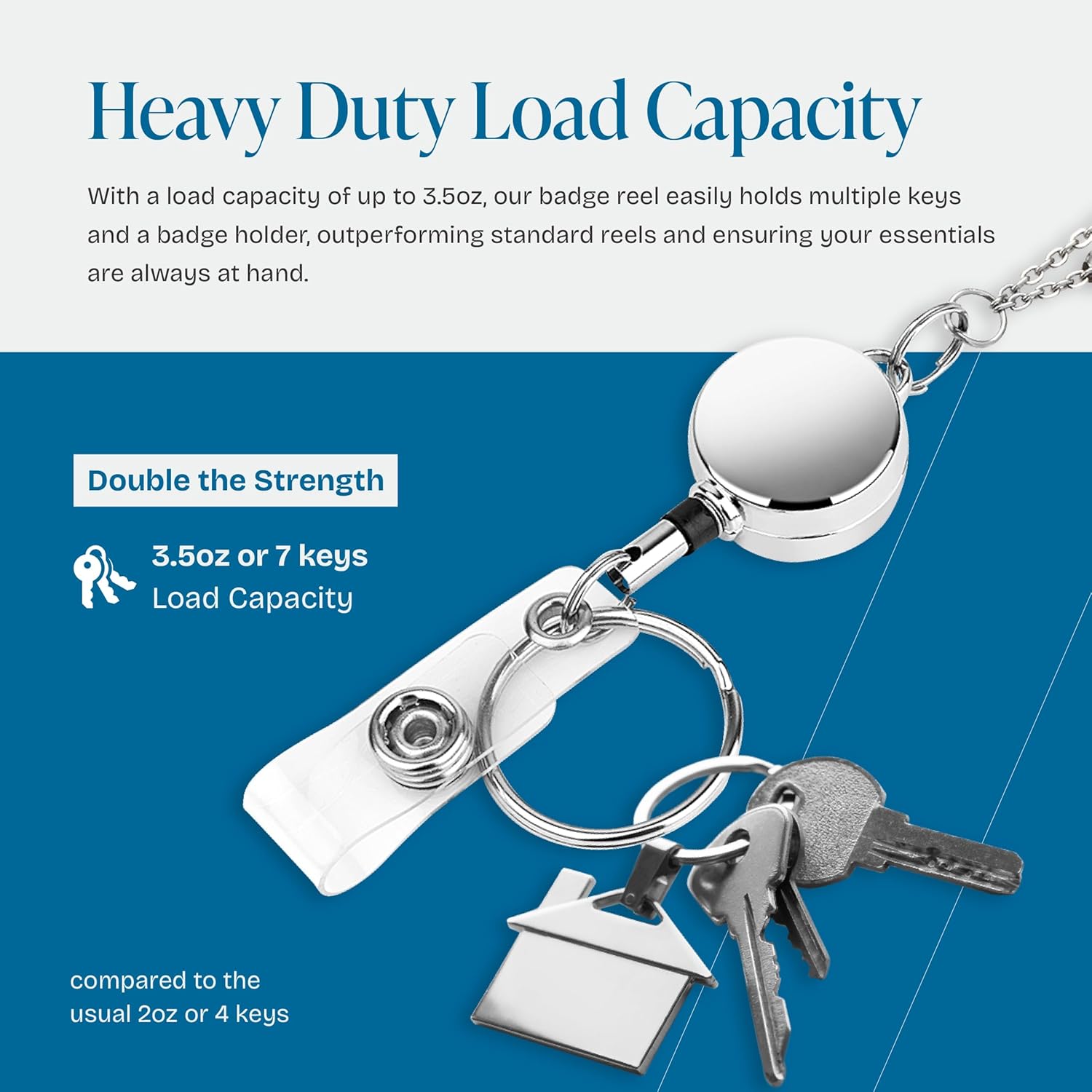 - Retractable Badge: 14.5" long extension retractable cord. This lanyard with retractable reel set allows you to scan ID cards easily. Comes with a key chain that can be hanged on the badge reel or on the necklace.