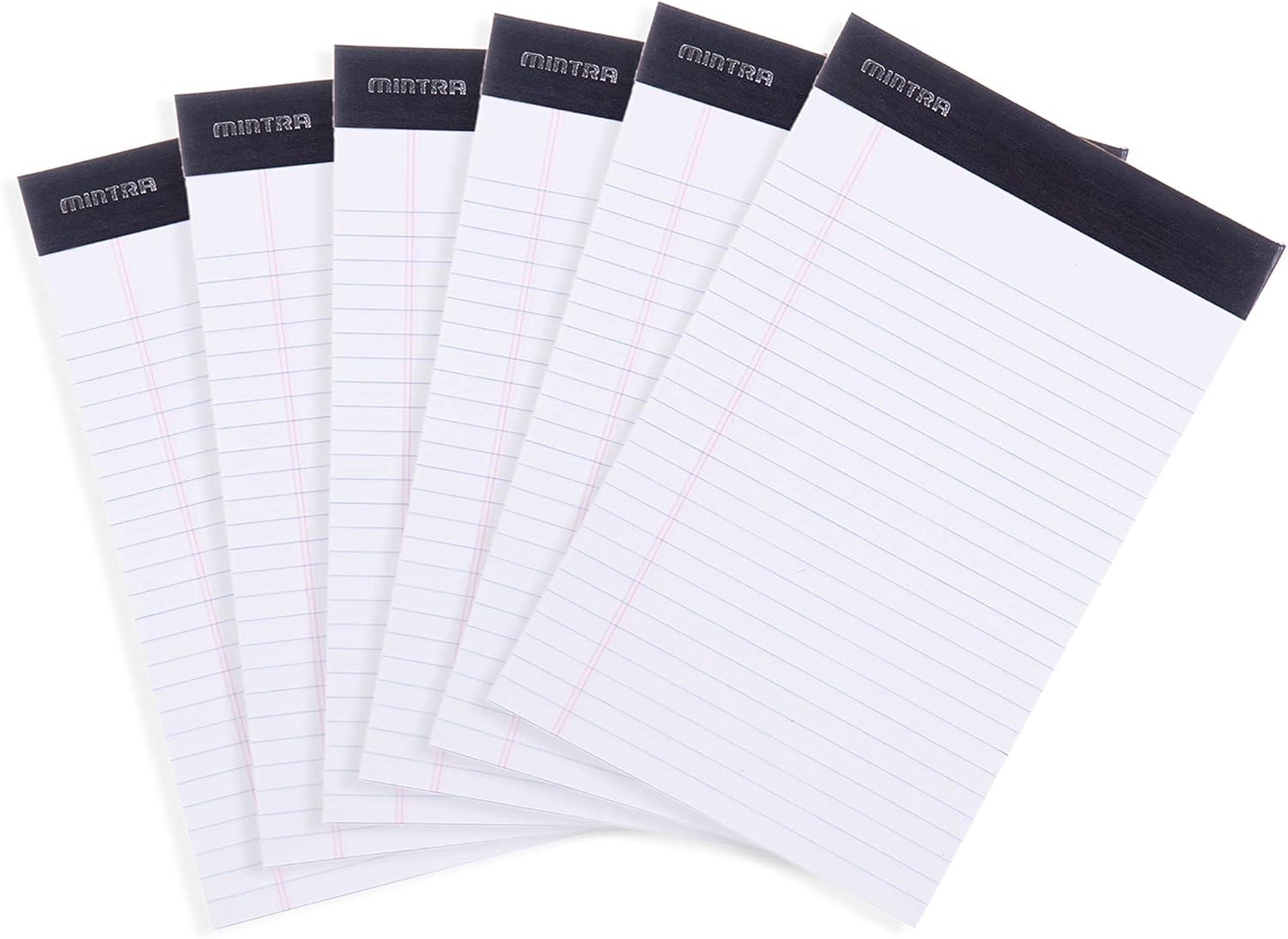 Mintra Office Legal Pads - ((BASIC WHITE 6pk, 5in x 8in, NARROW RULED))
