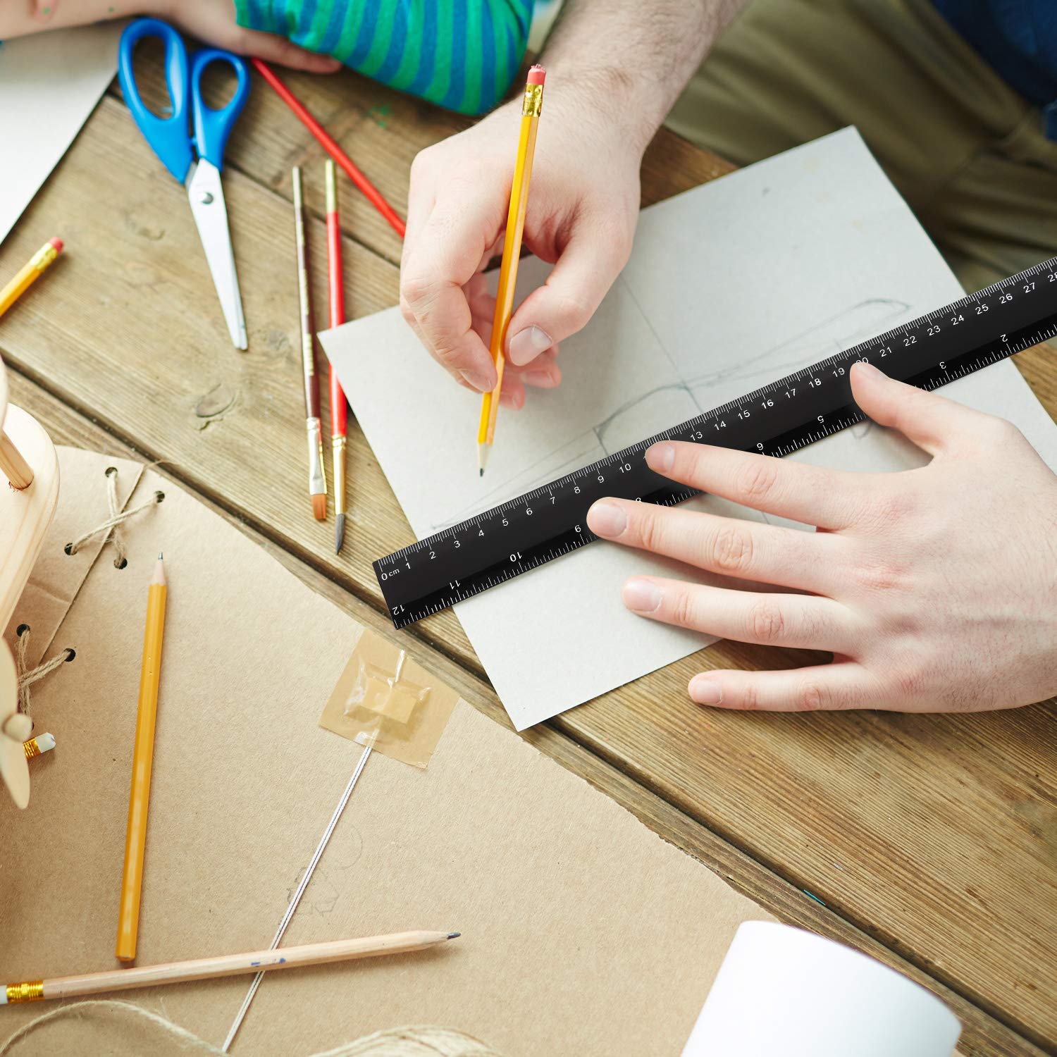 - Easy to measure and read: for a clear view of what you're measuring, grab the 12 inch/ 30 cm black plastic ruler from office impressions, measurements scaled in standard on one edge and metric on the other