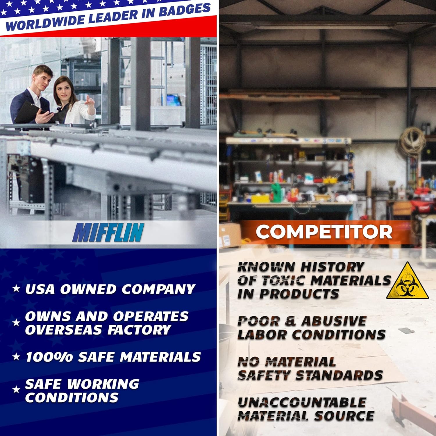 - TRUSTED & SAFE - Mifflin is an American-owned company that owns its overseas factories and ensures safe materials; Be careful, protect your users! Ensure no dangerous, impure chemicals; Ensure factory worker health and safety is respected