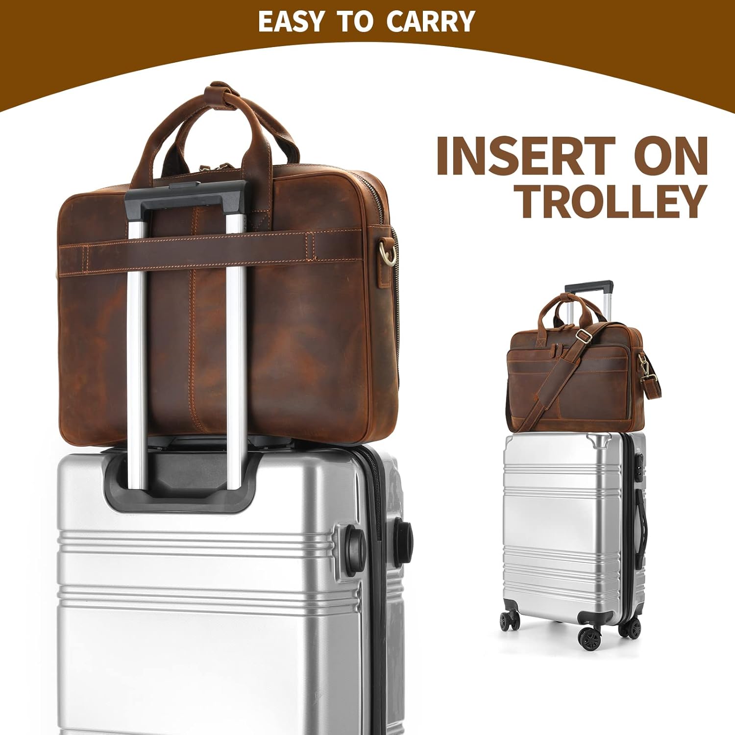- Material: 100%Cowhide Grain leather mens briefcase. Sturdy top handle men's briefcase, adjustable nice shoulder straps (appr. 85 ~ 140 cm).
