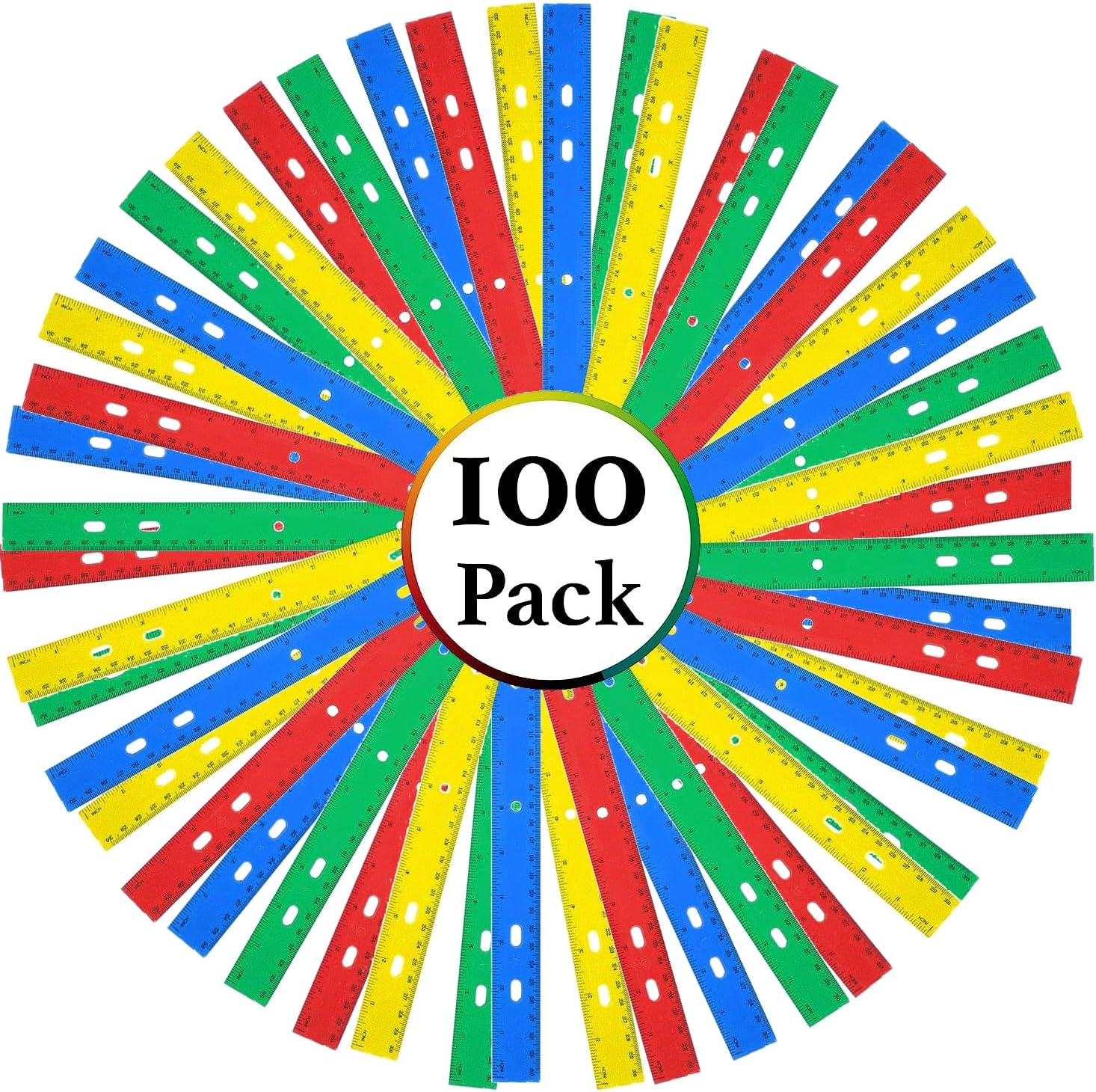 - PRACTICAL: Each package comes with 100 rulers in the following colors: 25 Red, 25 Blue, 25 Green, and 25 Yellow per pack. Rather than buying one a time, keep a plentiful supply on hand in case students break or lose them