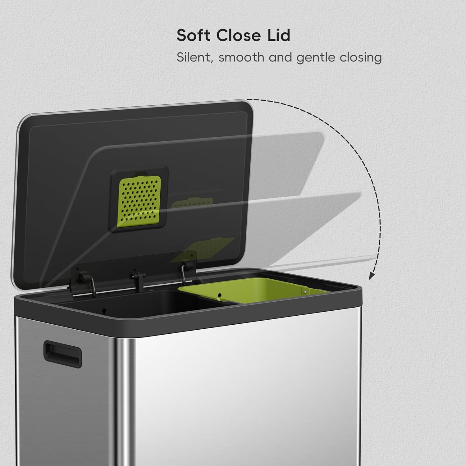 - Special Feature : Smudge Resistant,Quiet Close,Cantilever Step Pedal mechanism,Foot Pedal,Removable Bucket,Dual Compartment,Portable,Durable,Space-Saving,Deodorizer Compartment,Odor Seal Smudge Resistant,Quiet Close,Cantilever Step Pedal mechanism,Foot Pedal,Removable Bucket,Dual Compartment,Portable,Durable,Space-Saving,Deodorizer… See more