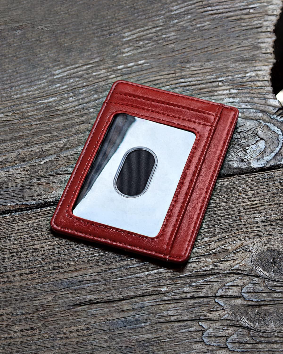 Buffway Slim Minimalist Front Pocket RFID Blocking Leather Wallets for Men and Women - Alaska Cherry