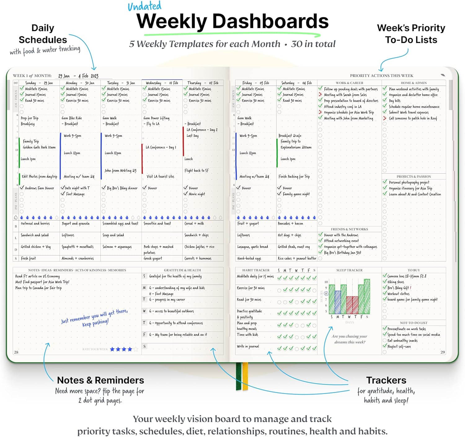 Purpose Planner Undated Monthly Weekly Daily Productivity Journal 2023 Optimised Life, Goal Setting & Business Tool for Academic Student, Professionals, Mums - Leather Day Organiser Notebook