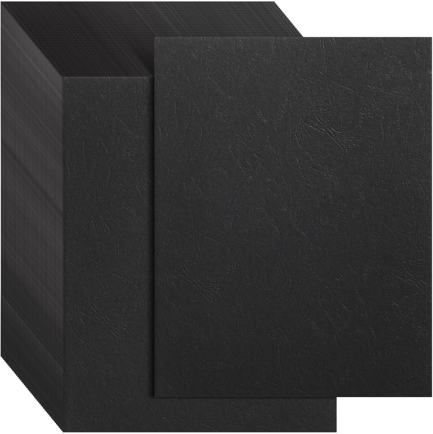 Juvale 100-Pack Black 13 Mil Presentation Binding Covers and Backs - 230g Letter Size Quality Leather Grain Paper for Business Reports, Office, School, & Spiral Binding Machine (8.5 x 11 In)