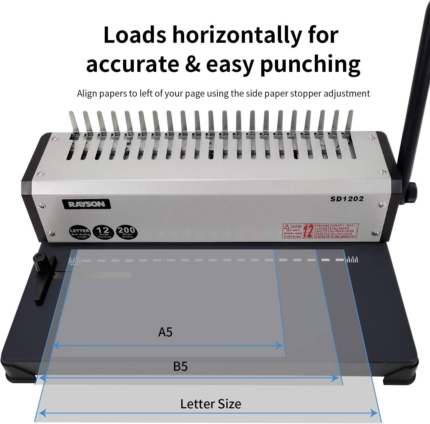 - Align papers to left of your page using the side margin adjustment. Loads horizontally for accurate & easy punching.