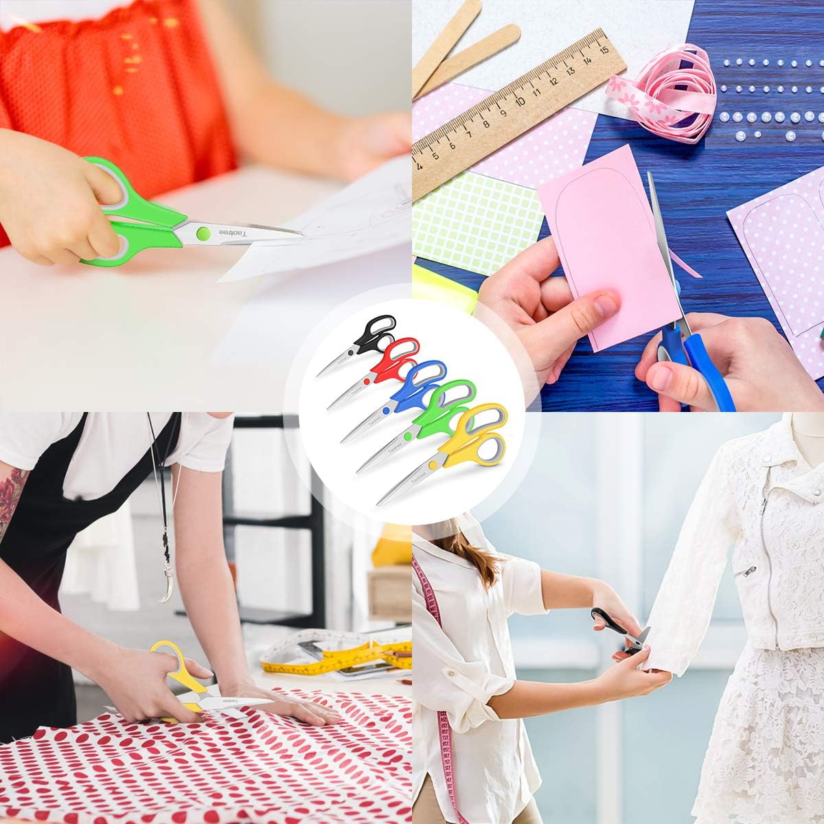 - 8 Inch Scissors: Taotree Scissors are Convenient, sturdy, especially sharp scissors for general use, Lightweight yet enough for any cutting job. Scissors for paper, cardboard, lightweight line, fabric and other materials. 5 special scissors are suitable for most items that need to be cut. especially sharp scissors, Easy to use.