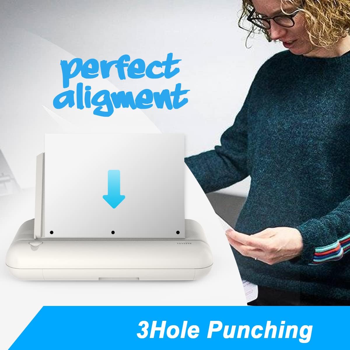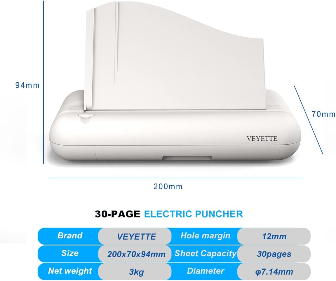 Electric 3 Hole Paper Punch, VEYETTE Heavy Duty Commercial Hole Puncher with Adapter for Office School Studio, 30 Sheet Capacity,Color Gray