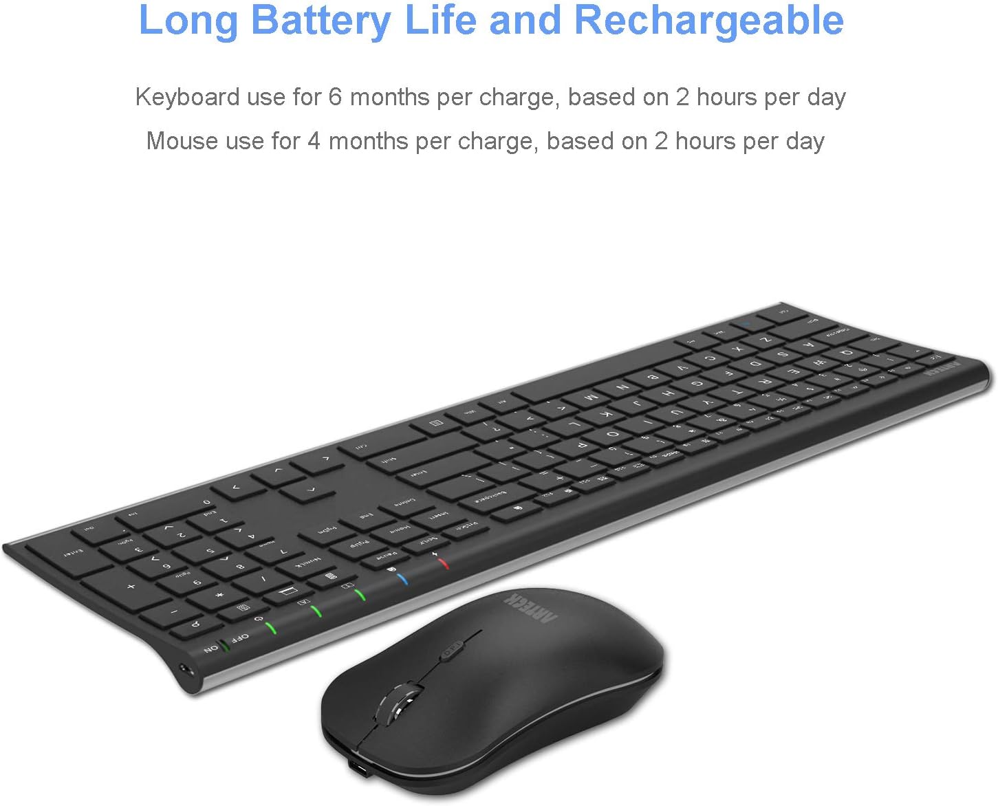 Arteck 2.4G Wireless Keyboard and Mouse Combo Stainless Steel Ultra Slim Full Size Keyboard and Ergonomic Mice for Computer Desktop PC Laptop and Windows 11/10/8 Build in Rechargeable Battery