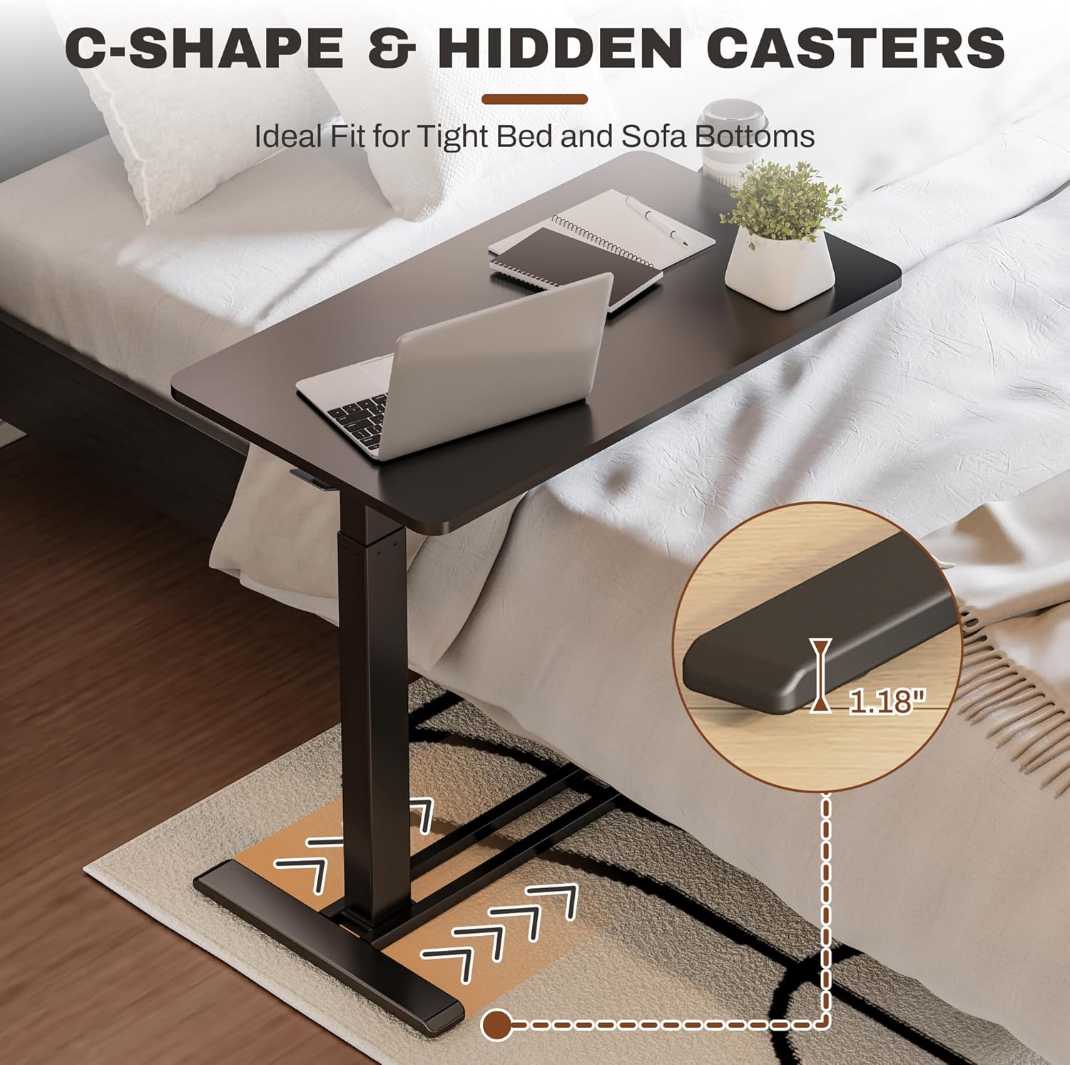 - Multi-function in One Design:This rolling computer desk offers a reliable and convenient desktop surface for anyone to use near furniture like beds, couches and recliners. It can also be used as breakfast tray for bedridden patients and elderly (e.g. eating, reading, working)without having to get off their beds.
