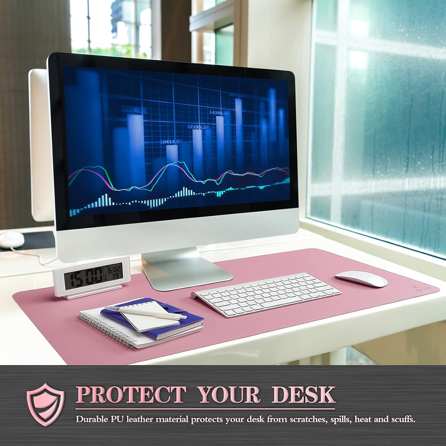 - UPGRADE SEWING PVC LEATHER: Made of durable PVC leather material, which protects your desk from scratches, spills, heat and scuffs. It also gives your office a modern and professional atmosphere when you put it on your desktop. NEW DESIGN SEWING desk pads are more durable than the normal desk protectors. It is perfect for both office and home.