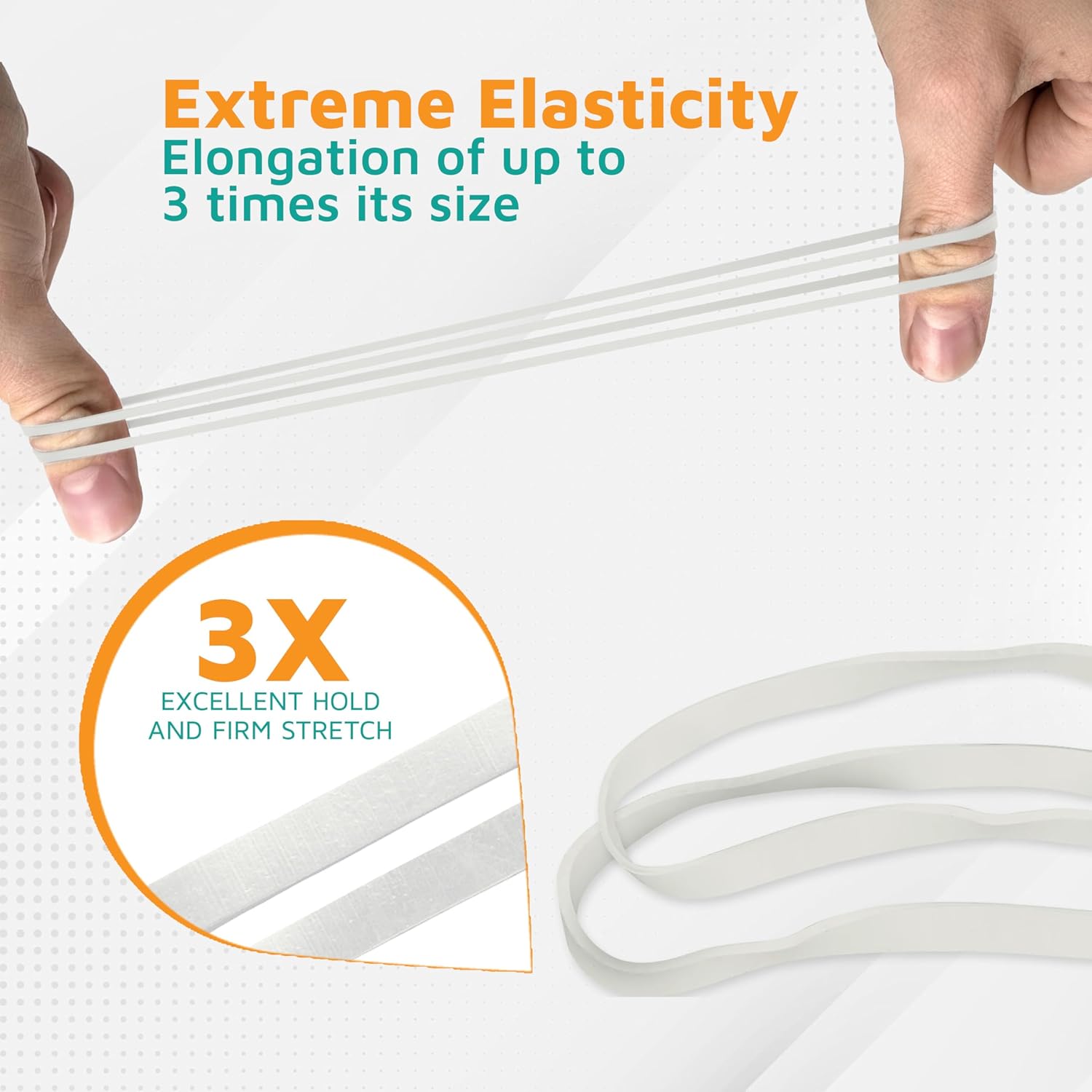 PlasticMill White Rubber Bands Size 33 (3 1/2" x 1/8") - #33 Rubber Bands Office Supplies - Strong, Elastic Bands for Crafts, Balloon Garland, Cash, File Folders (100-Pack)