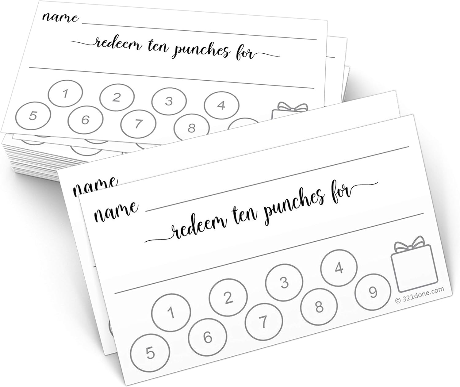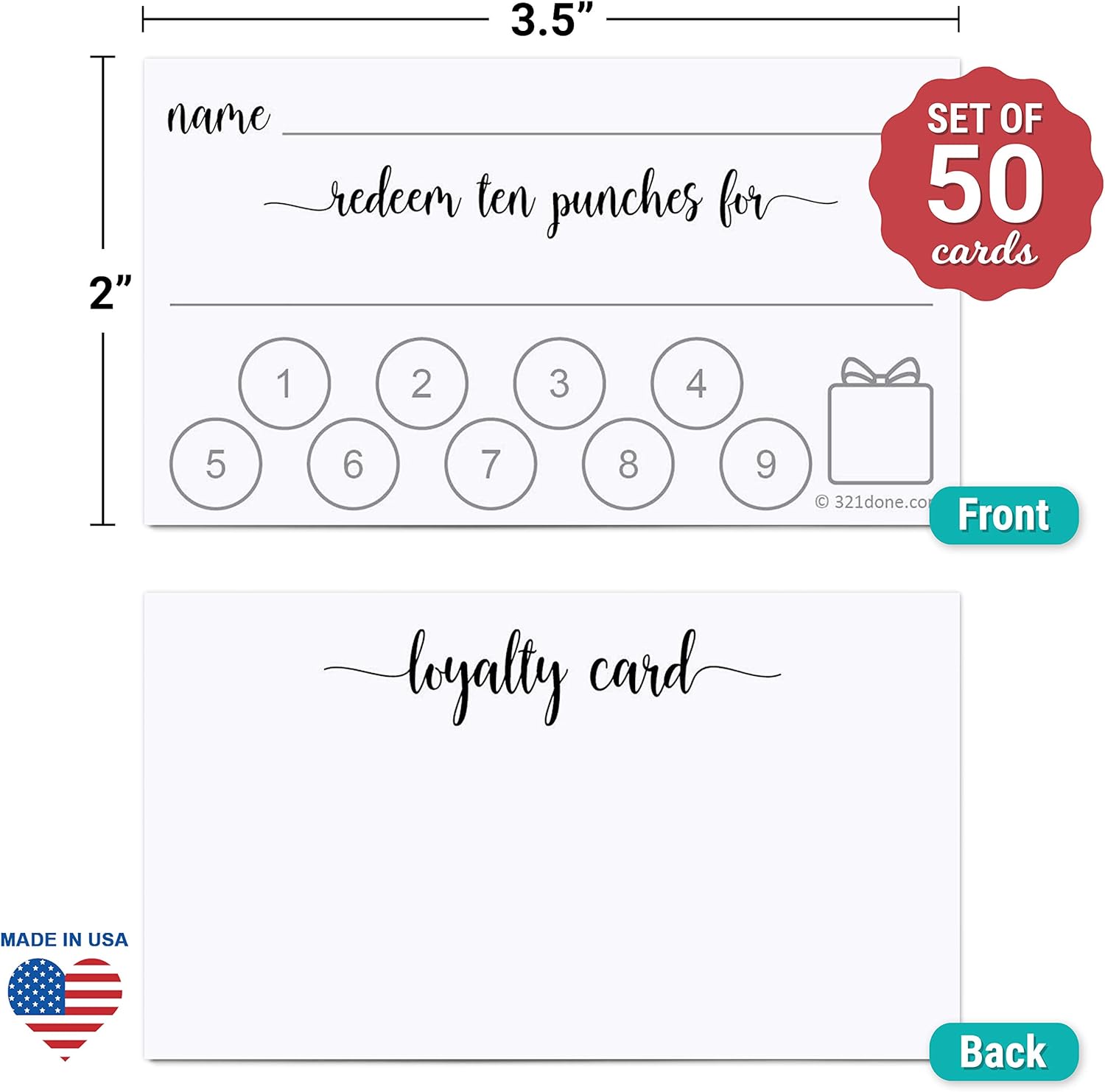 321Done Loyalty Punch Cards, Made in USA - Customer Reward Card 3.5x2, Business Card Size, Redeem 10 Punches or Visit for Prize, White - Set of 50
