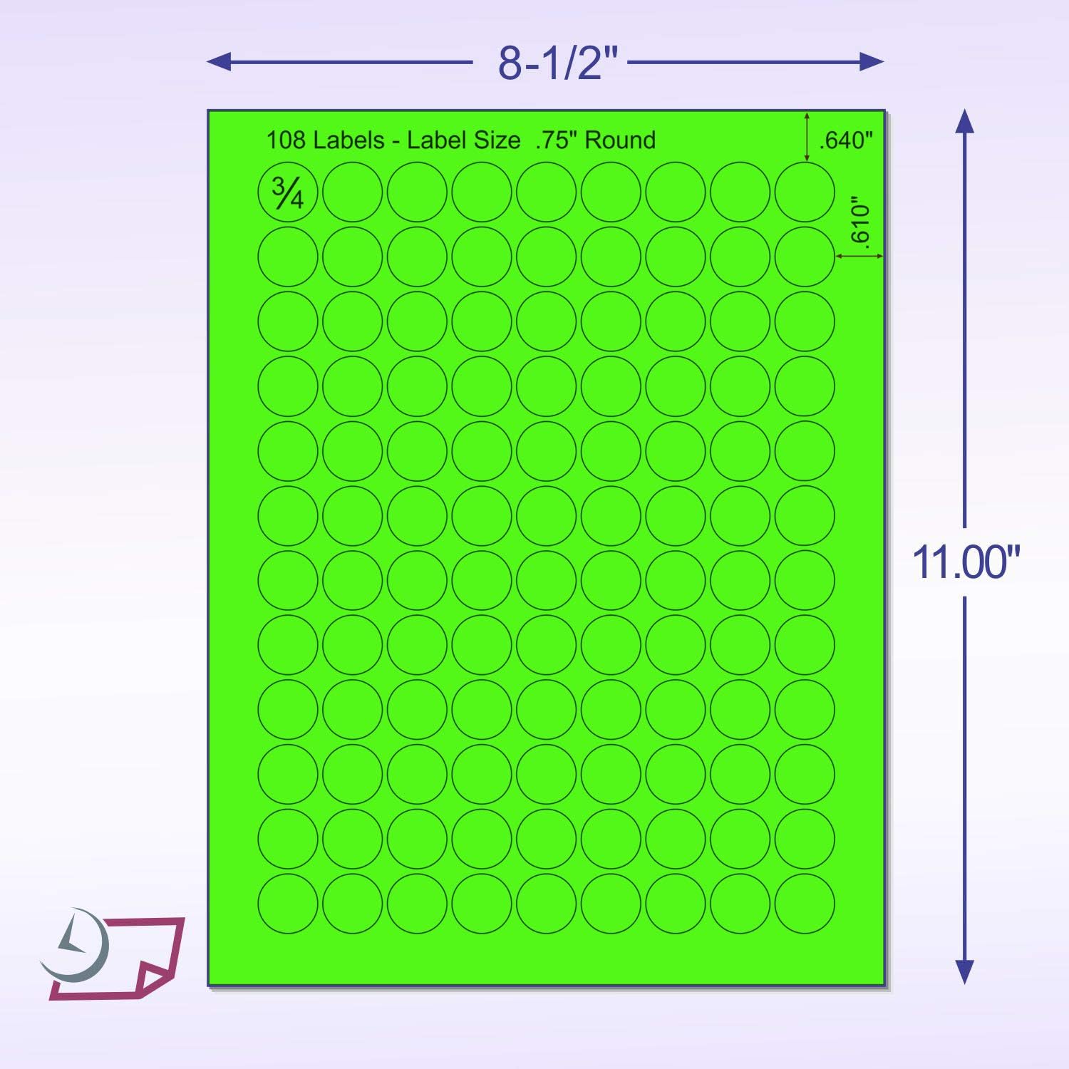 NextDayLabels - 8-1/2 x 11 Neon Color High Light Fluorescent Labels for Laser & Inkjet Printer (Green Fluorescent, 3/4" Round - 108 Per Page | 2700 Labels)