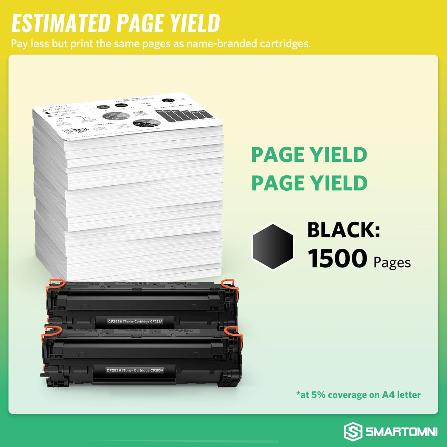- Package: 2 Packs (black) 83A CF283A toner cartridges and an installation guide