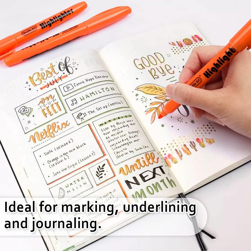 Shuttle Art Highlighters, 30 Pack Highlighters Bright Colors, Orange Colors Chisel Tip Dry-Quickly Non-Toxic Highlighter markers for Adults Kids Highlighting in the Home School Office