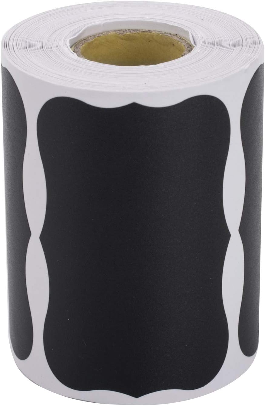 - COMPLETE SET YOU CAN FIND: A roll of 180 chalkboard labels ( 2" x 2.95" ) + A white chalk marker. Reasonable size let you can cut these blackboard labels into different shapes, custom personalized sticker labels use as glass bottle labels for eye-catching table numbers for wedding, or as decorative slate stickers for a standout dessert buffet. Chalkboard labels are a must-have decorate for all special occasions.