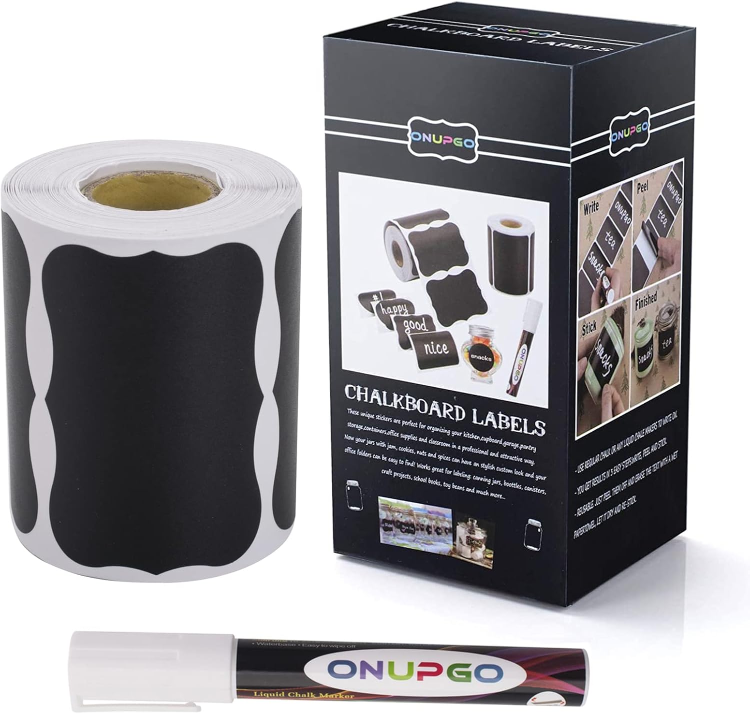 ONUPGO Chalkboard Labels-180pcs Waterproof Reusable Blackboard Stickers with 1 Liquid Chalk Marker for Mason Jars, Parties Decoration, Craft Rooms, Weddings, Storage, Organize Your Home & Kitchen