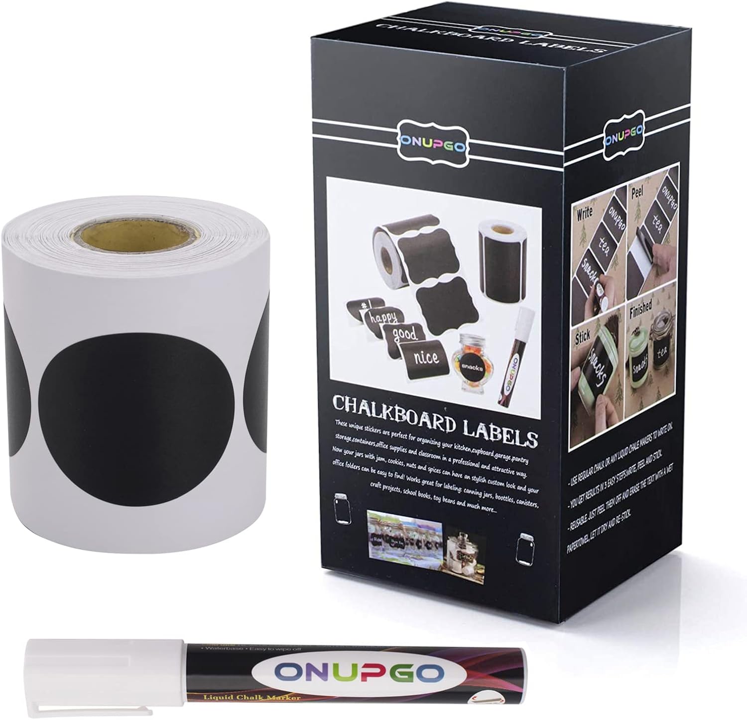 ONUPGO Chalkboard Labels-180pcs Waterproof Reusable Blackboard Stickers with 1 Liquid Chalk Marker for Mason Jars, Parties Decoration, Craft Rooms, Weddings, Storage, Organize Your Home & Kitchen