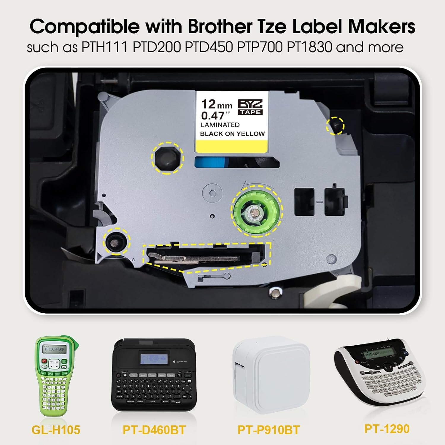 - Compatible with Brother P touch Label Makers: PTH110 PT-D210 PT-D400AD PT-H100 PT-D400 PT-P700 PT-D600 PT-1230PC PT-P300BT PT-P710BT PT-1890C PT-D600VP PT-1280 PT-2030 PT-1090 PT-1290 PT-D400VP PT-P750W PT2730VP PT-D450 PT-E500 PT-H500LI PT-D200 PT-1880C PT-1880W PT-H300LI PT-1880 PT-1800 PT-1830 PT-2730 PT-1010 PT-1890W PT-2430PC PT-9700PC PT-H300 PT-E100 PT-P950NW PT-P900W PT-P750WVP PT-E550W PT-2300 PT-9600, etc.