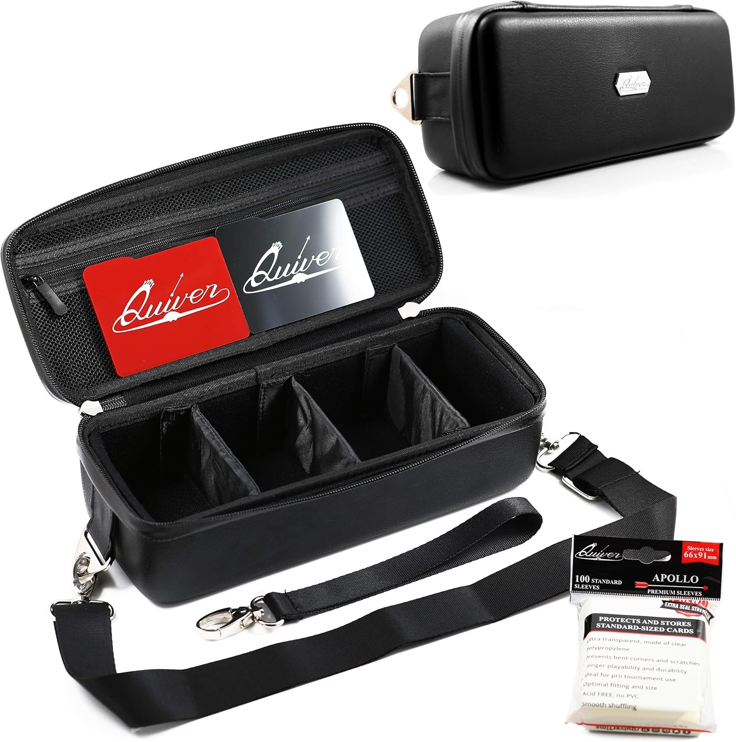Quiver Time Black Bolt Card Carrying Case fits Pokemon Cards and other TCG Games - Storage Bag for Playing/Trading Cards and Deck Box (Straps, Dividers & 100 Apollo Card Sleeves)