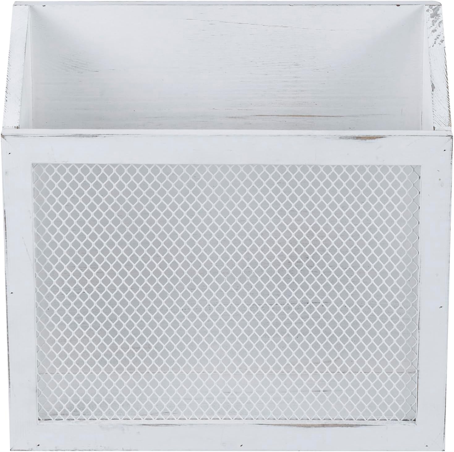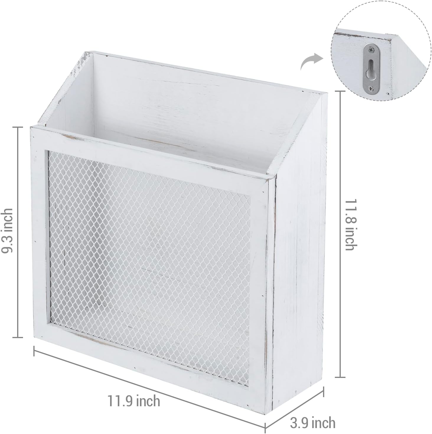 MyGift Rustic Magazine Holder Vintage White Wood and Chicken Wire Design Wall Mounted/Tabletop Mail Sorter, Farmhouse Home, Bathroom, Office Magazine Rack
