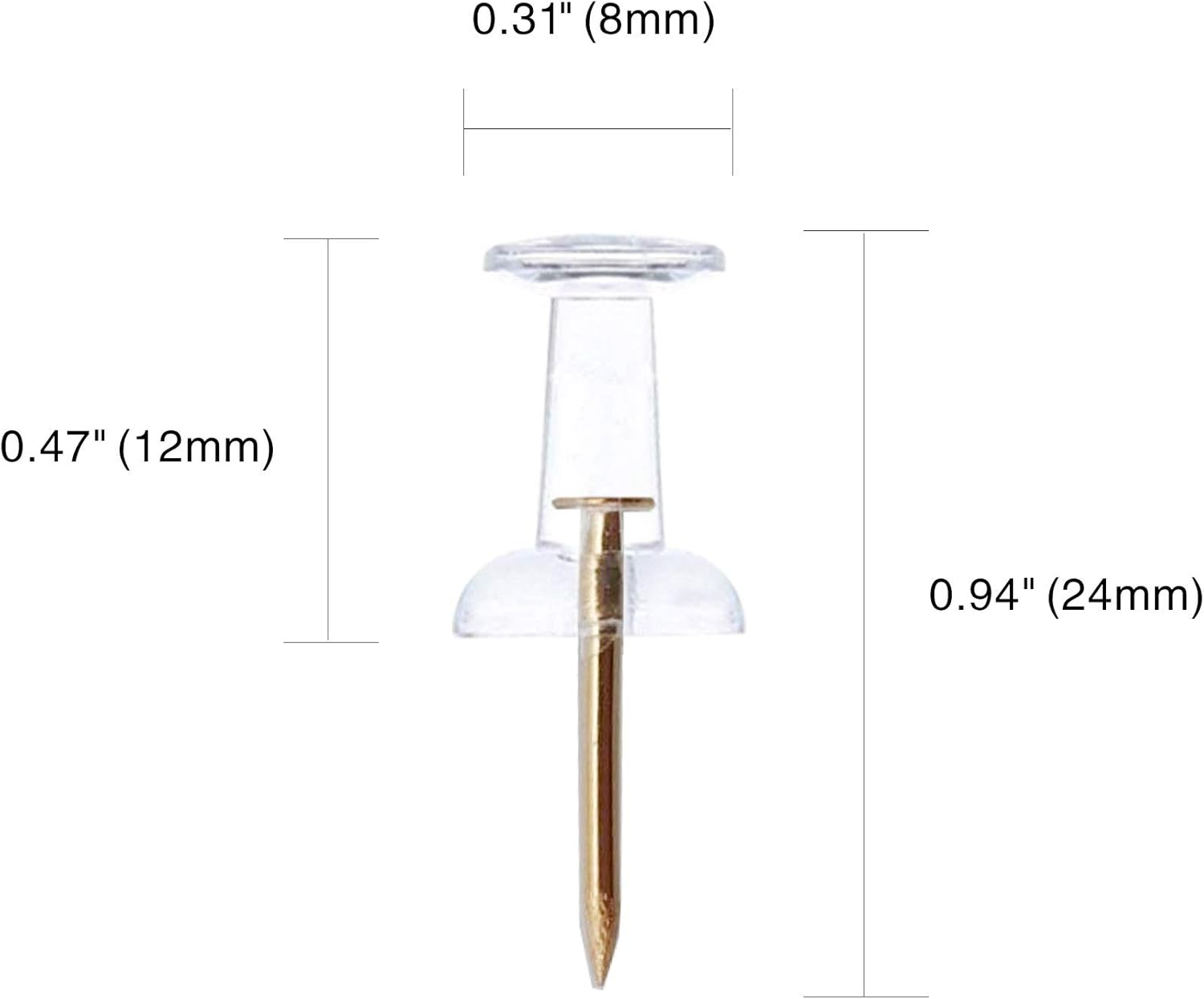 Clear Push Pins 600pcs Standard Thumb Tacks with Rose Gold Steel Point Transparent Plastic Head Pins for Hanging Photo Posters Craft Marking Map Wall Cork Board