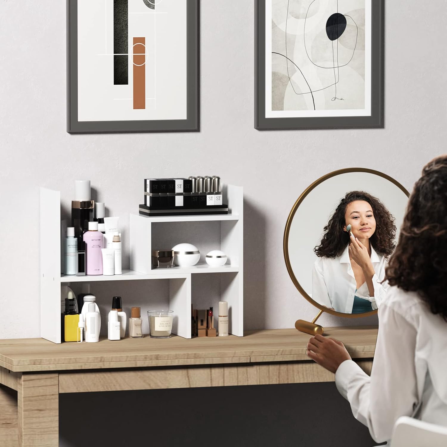 TY ARTS & CULTURE - Expandable Wood Desktop Storage Organizer Multipurpose Desk Bookshelf Display Shelf Rack Counter Top Bookcase for Office Home | Pure White