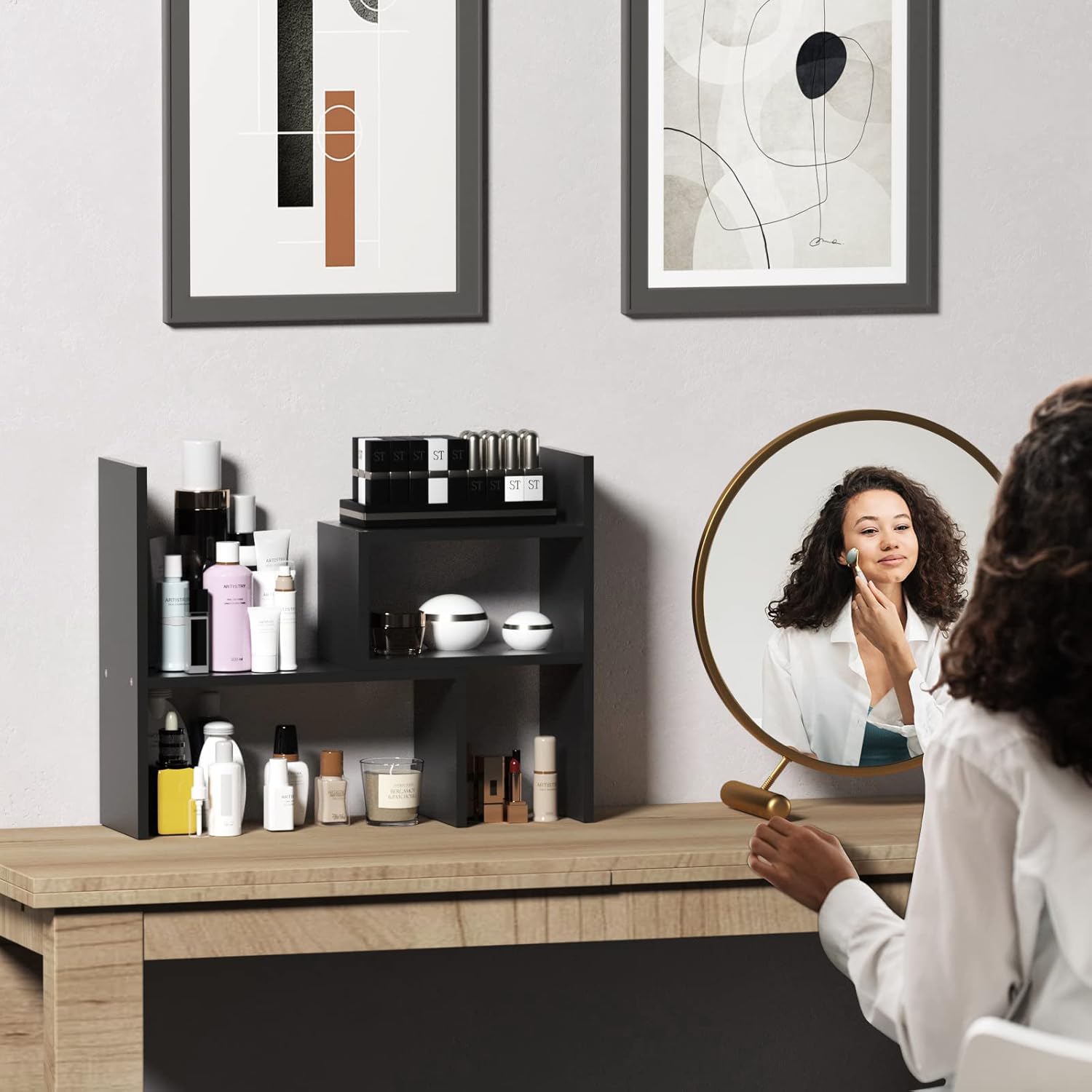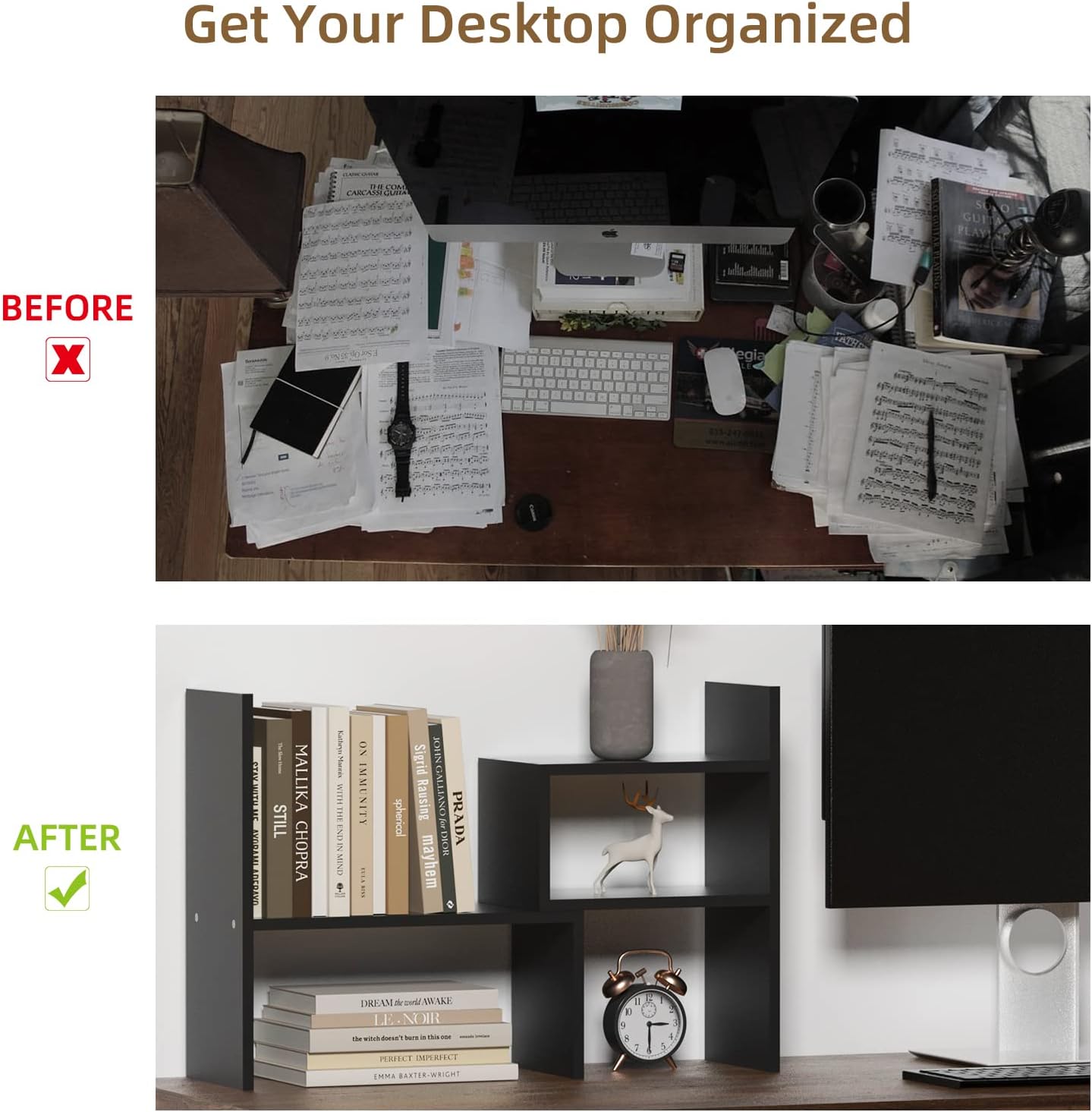 TY ARTS & CULTURE - Expandable Wood Desktop Storage Organizer Multipurpose Desk Bookshelf Case Display Shelf Rack Counter Top Bookcase for Office Home | Black
