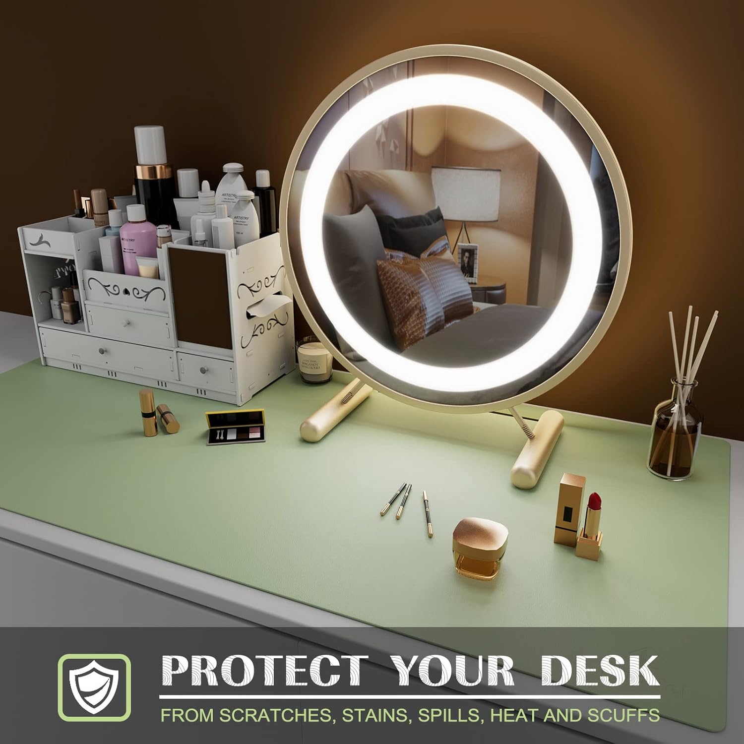 K KNODEL Large Office Leather Desk Mat, Mouse and Keyboard Pad, Computer and Laptop Mat, Desktop Protector and Cover, Writing Pad and Blotter (35.4"x17", Light Green)