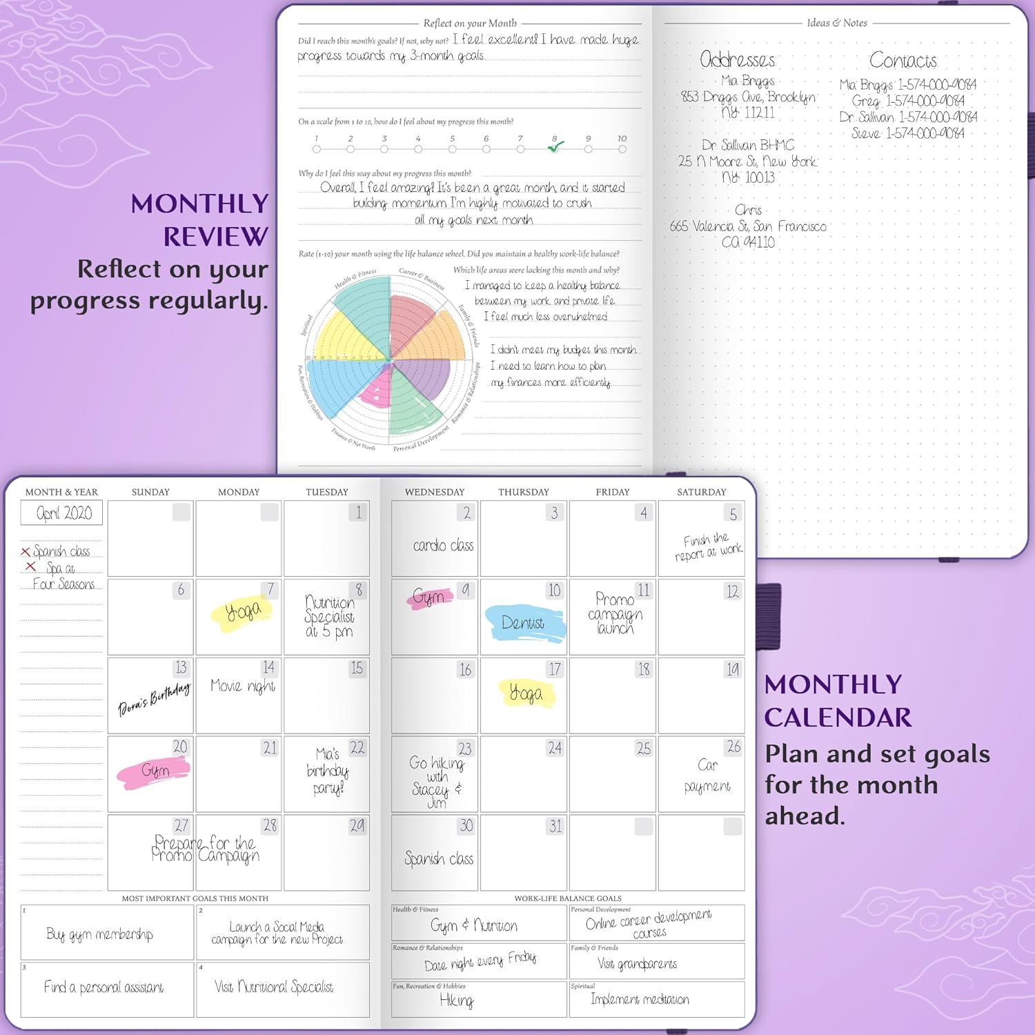 - STAY ORGANIZED & BOOST PRODUCTIVITY – Use spacious monthly calendars and weekly pages to set goals, tasks, deadlines, and appointments. Easily manage your schedule with convenient 6 AM to 9 PM time slots.
