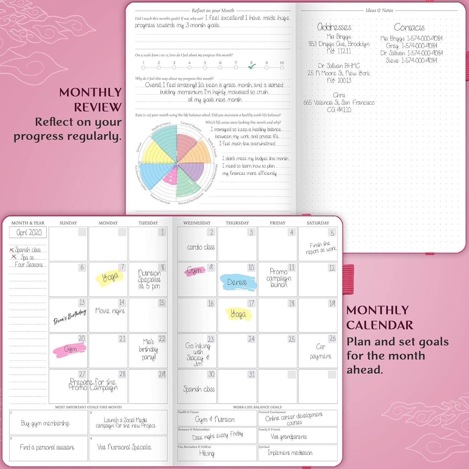 - STAY ORGANIZED & BOOST PRODUCTIVITY – Use spacious monthly calendars and weekly pages to set goals, tasks, deadlines, and appointments. Easily manage your schedule with convenient 6 AM to 9 PM time slots.