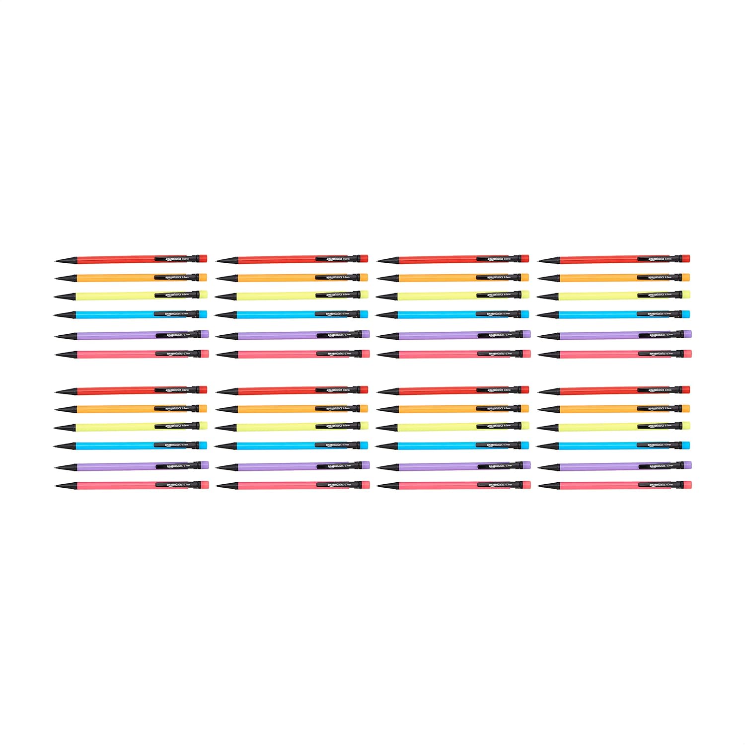 Amazon Basics Mechanical Pencils 0.7mm For Writing, Drawing, Bulk Office and School Supplies, Multicolor, 48-Pack